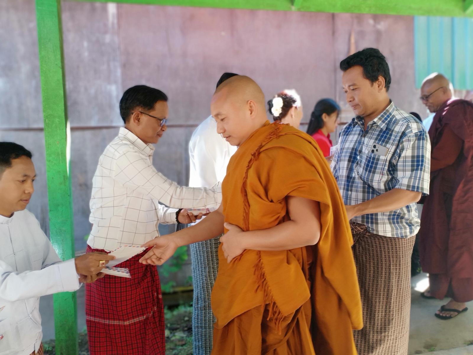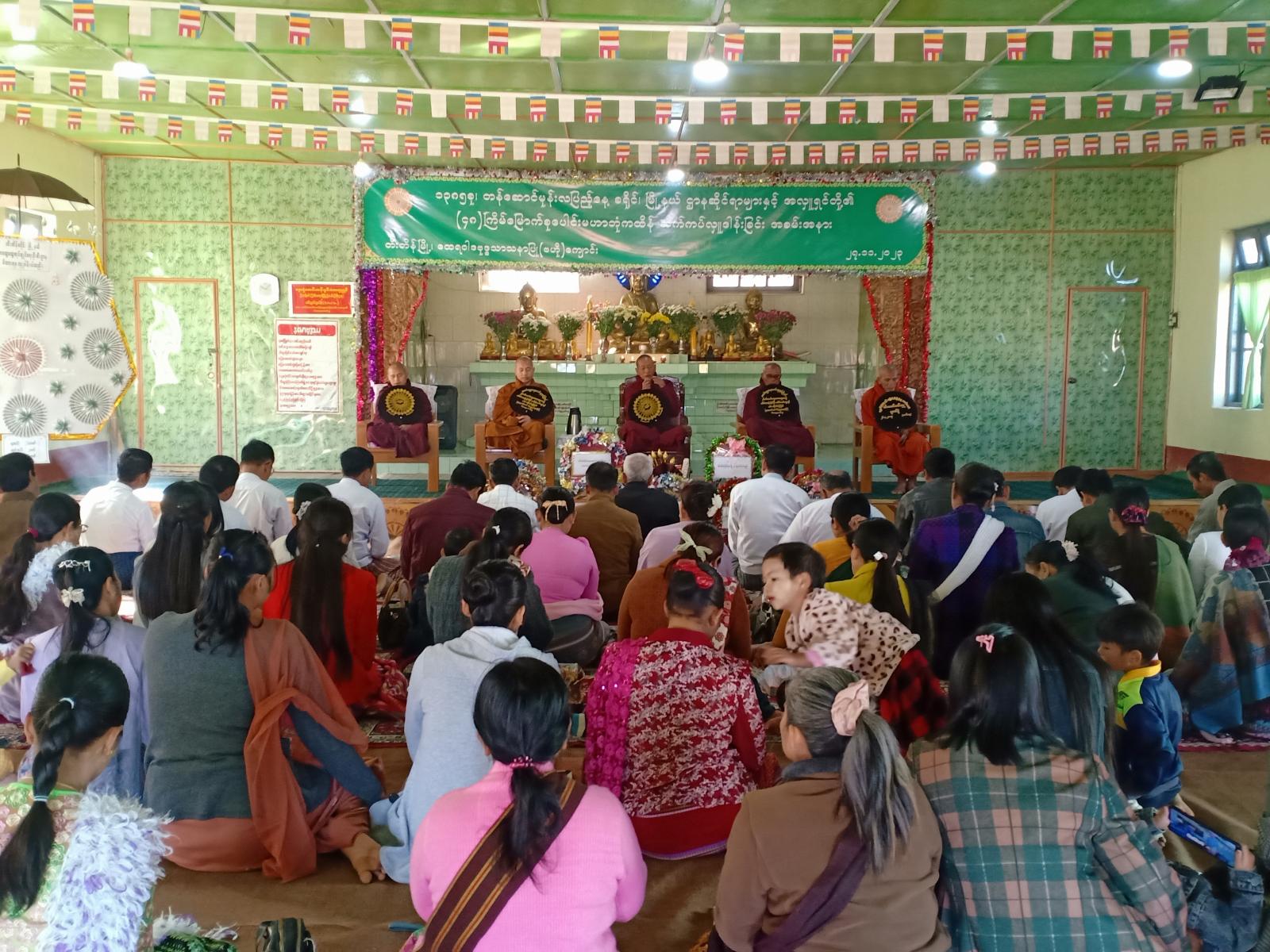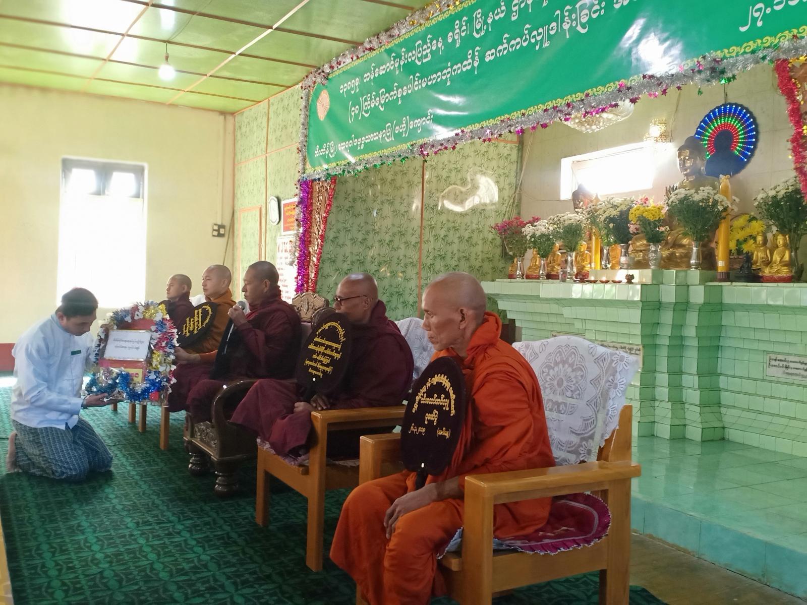 ဦးစွာ နမောတဿ (၃)ကြိမ်ရွတ်ဆို ဘုရားကန်တော့၍ တွန်းဇံမြို့၊ ထေရဝါဒဗုဒ္ဓသာသနာပြု (ဗဟို) ကျောင်းဆရာတော်ဘဒ္ဒန္တကုသလ (မဟာသဒ္ဓမ္မဇောတိကဓဇ) ထံမှ (၈)ပါးသီလ ခံယူ ဆောက်တည်ပြီး ကထိန်လျာ မြတ်သင်္ကန်းနှင့် လှူဖွယ်ဝတ္ထုပစ္စည်းများအား ခရိုင်စီမံအုပ်ချုပ်ရေး ဥက္ကဋ္ဌ ဦးအောင်ချမ်းငြိမ်းနှင့် အဖွဲ့ဝင်များ၊ မြို့နယ်စီမံအုပ်ချုပ်ရေးအဖွဲ့ဥက္ကဋ္ဌ ဦးဖြိုးဝင်းသန်းနှင့် အဖွဲ့ဝင်များ၊ အလှူရှင်များက ဆက်ကပ်လှူဒါန်းကြသည်။