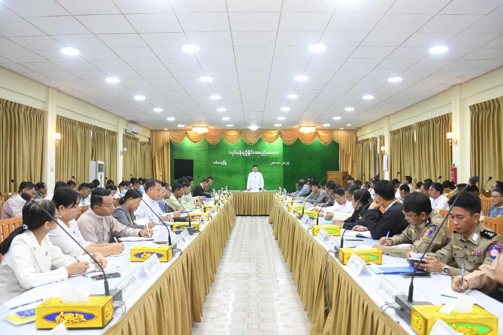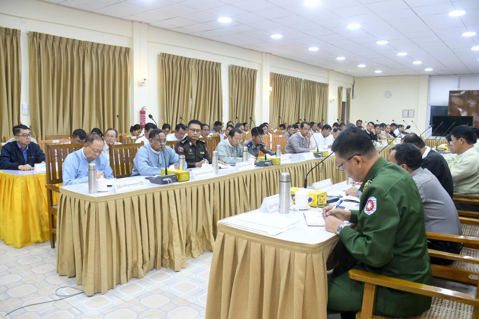 ဆက်လက်၍ ပြည်နယ်ဝန်ကြီးများ၊ ပြည်နယ်ဥပဒေချုပ်နှင့်အစိုးရအဖွဲ့အတွင်းရေးမှူးတို့က လုံခြုံရေးဆိုင်ရာ ကိစ္စရပ်များ၊ ဒေသဖွံ့ဖြိုးရေးဆောင်ရွက်နေမှုများ၊ ဆက်သွယ်ရေးကိစ္စရပ်များ၊ ခရီးသွားလာခွင့်ဆိုင်ရာကိစ္စရပ်များ၊ သတင်းအချက်အလက်များ၊ ပြည်ထောင်အစိုးရ အဖွဲ့၏ ညွှန်ကြားချက်များနှင့်ပတ်သက်၍ ရှင်းလင်းဆွေးနွေးတင်ပြကြပြီး ပြည်နယ်အဆင့်ဌာနဆိုင်ရာများက မိမိတို့ ဌာနအလိုက် လုပ်ငန်းဆောင်ရွက်နေမှုများနှင့် ရှင်းလင်းတင်ပြကြသည်။