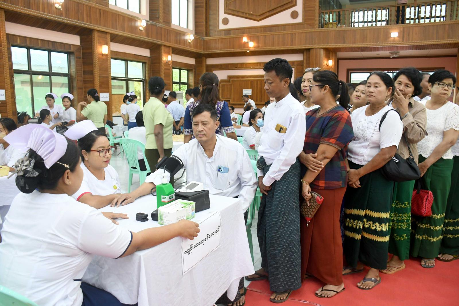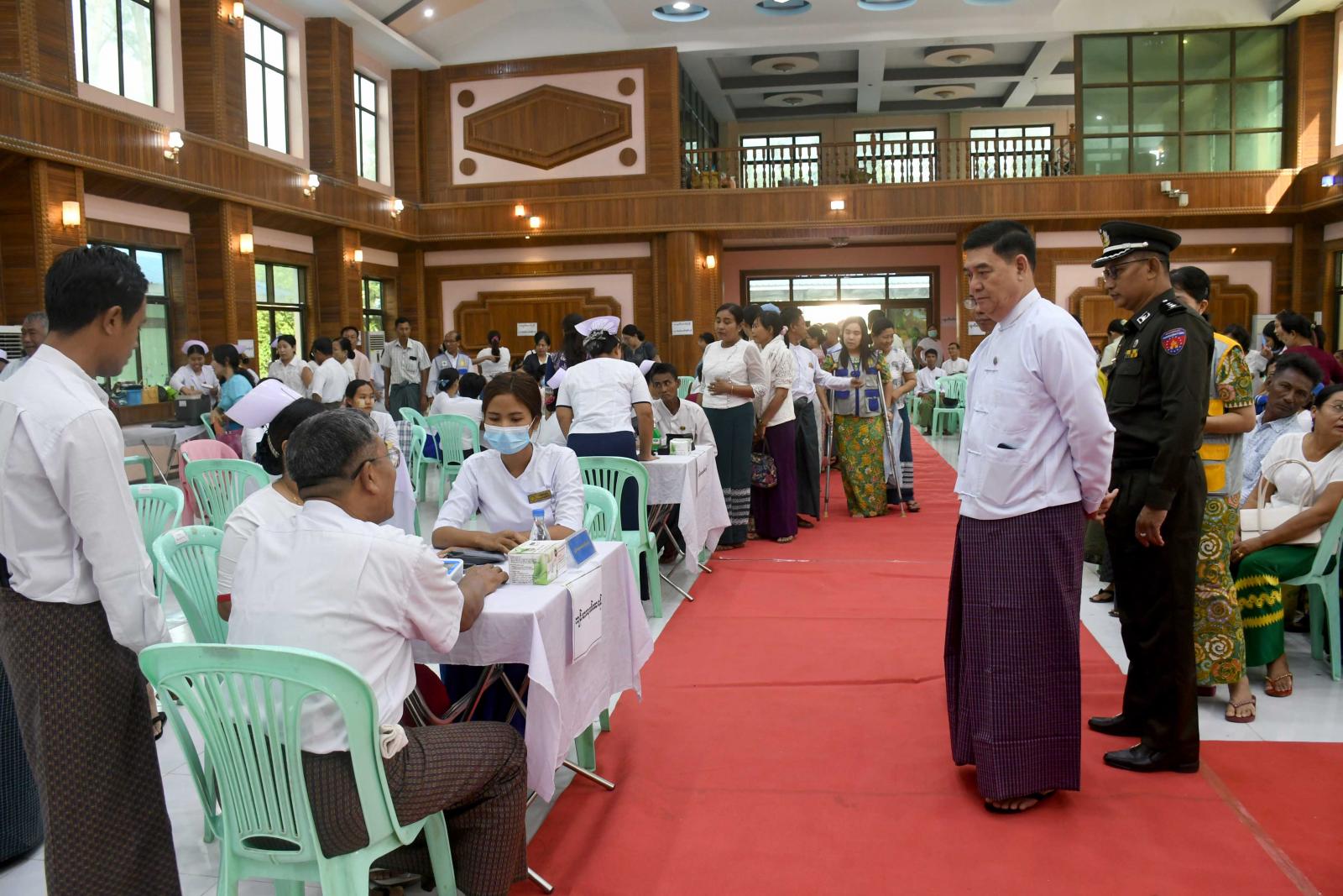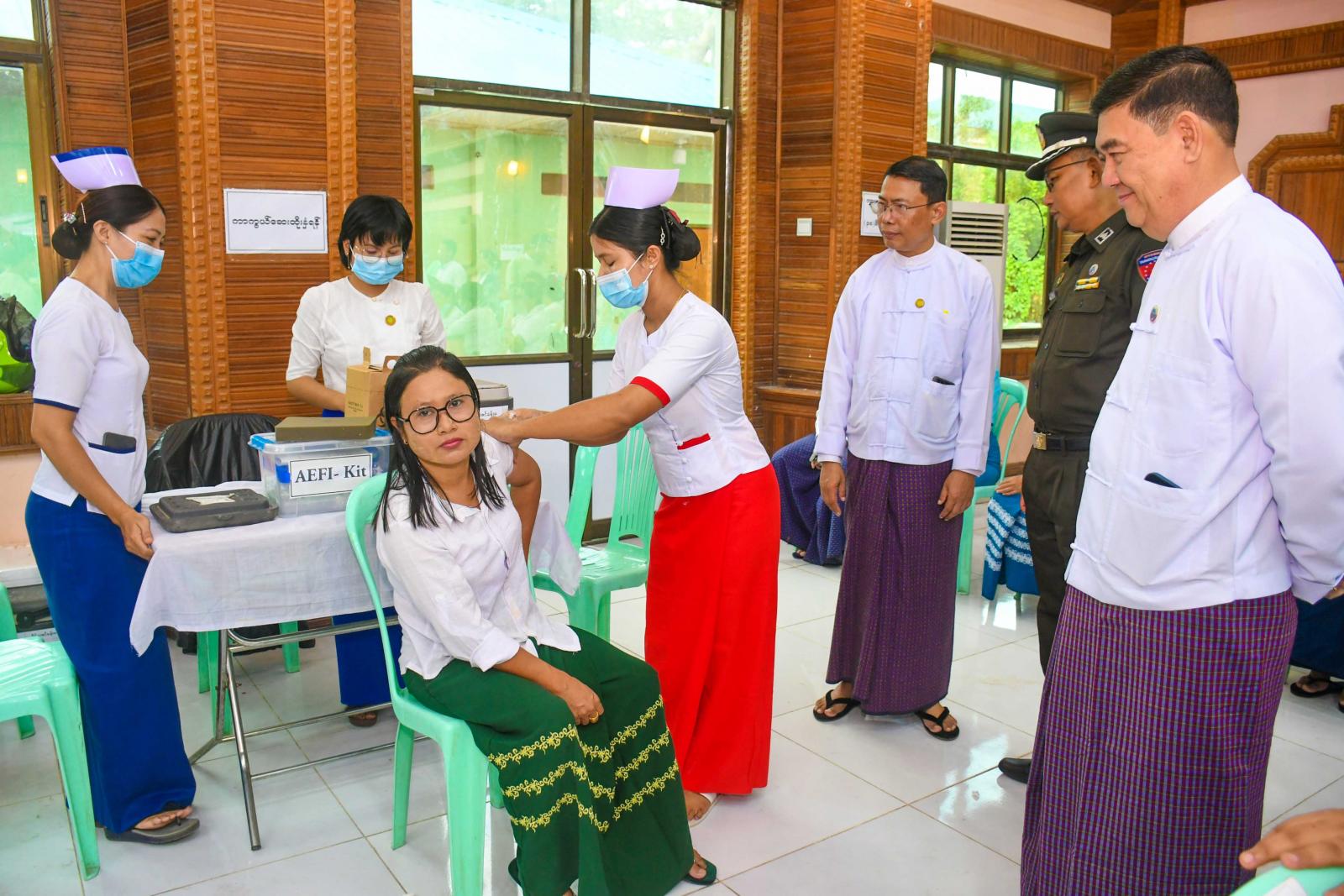 ရာသီတုတ်ကွေးရောဂါကာကွယ်ဆေး ထိုးနှံခြင်းမပြုမီ ကျန်းမာရေးဝန်ထမ်းများက သွေးပေါင်ချိန် တိုင်းတာပေးခြင်း၊ သွေးအတွင်းအောက်ဆီဂျင် ပါဝင်မှု ပမာဏ တိုင်းတာပေးခြင်းတို့ကို ဆောင်ရွက်ပေးကြပြီး ရာသီတုတ်ကွေးရောဂါ ကာကွယ်ဆေး Influenza Vaccine(Vaxigrip Tetra) ထိုးနှံပေးကြရာ ပြည်နယ်ဝန်ကြီးချုပ်နှင့် တာဝန်ရှိသူများက လိုအပ်သည်များကို ပေါင်းစပ်ညှိနှိုင်းပေးခဲ့ကြကြောင်း သတင်းရသည်။