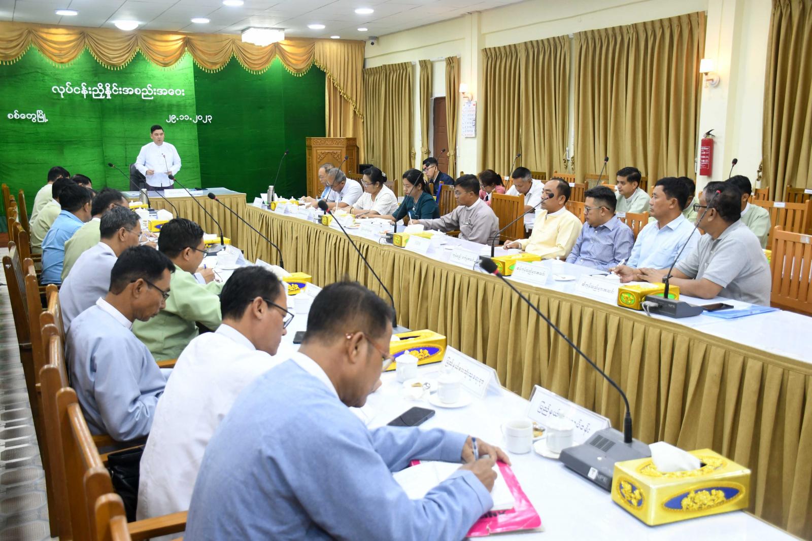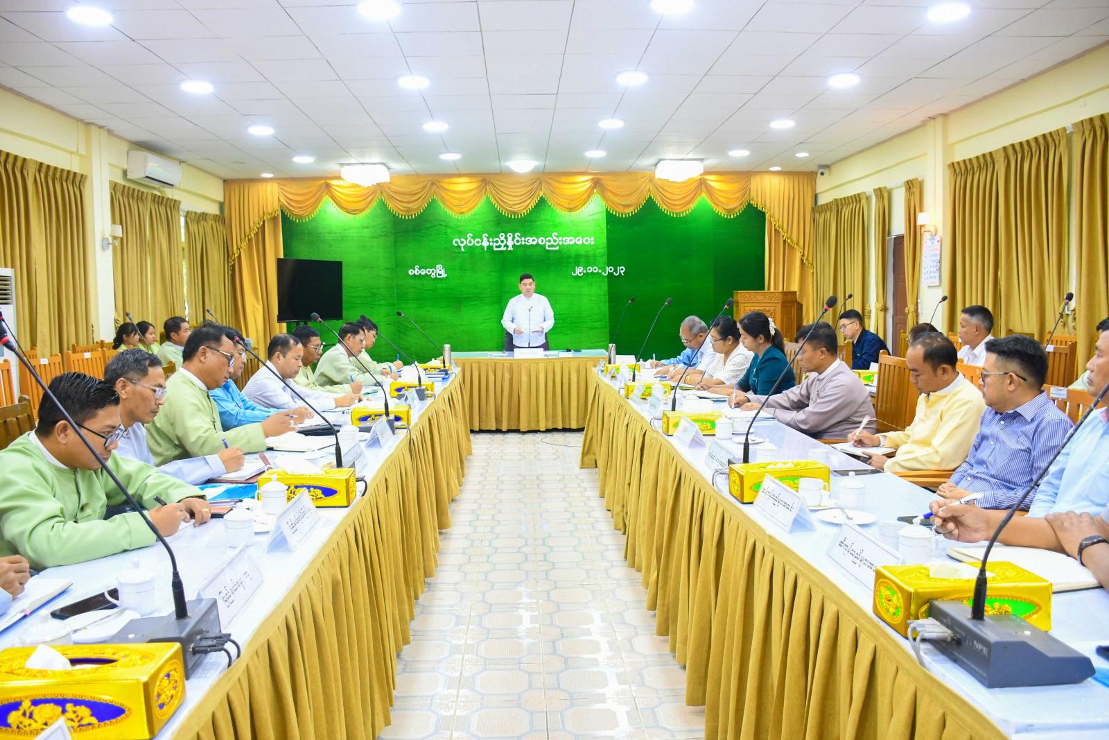 ဆက်လက်၍ ရခိုင်ပြည်နယ် MSME Agency ဥက္ကဋ္ဌ၊ ပြည်နယ်စီးပွားရေးရာဝန်ကြီး ဦးစံရွှေမောင်က အသေးစား၊ အငယ်စားနှင့်အလတ်စား စီးပွားရေးလုပ်ငန်းများ ဖွံ့ဖြိုးတိုးတက်ရေးနှင့် ပတ်သက်၍ ဆွေးနွေးတင်ပြပြီး စက်မှုကြီးကြပ်ရေးနှင့်စစ်ဆေးရေးဦးစီးဌာနနှင့် အသေးစားစက်မှုလက်မှုလုပ်ငန်း ဦးစီးဌာနတို့မှ ပြည်နယ်ဦးစီးမှူးများက ရခိုင်ပြည်နယ်အတွင်း MSME လုပ်ငန်းရှင်များ၏ လုပ်ငန်း ဆောင်ရွက်နေမှုများကို ရှင်းလင်းတင်ပြသည်။