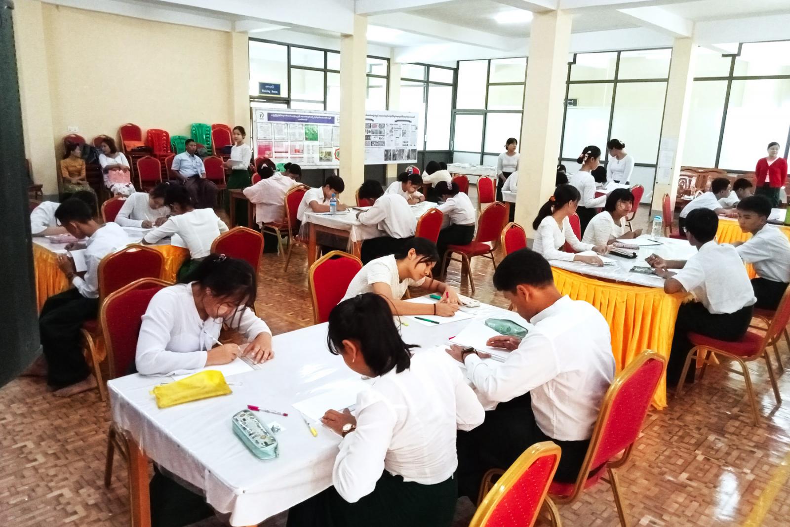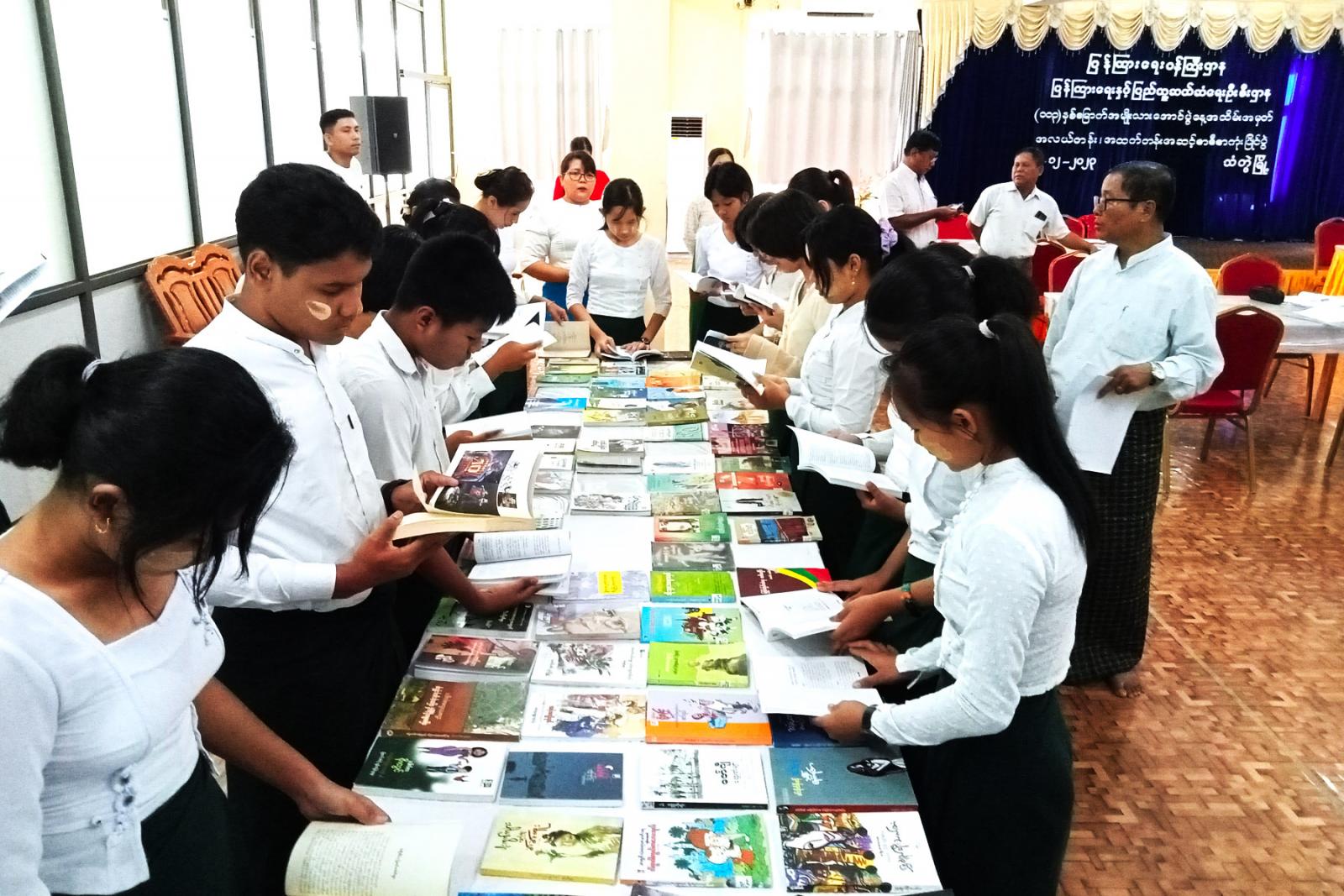 ပြိုင်ပွဲအပြီးတွင် ကျောင်းသား၊ ကျောင်းသူများသည် ပြန်ကြားရေးနှင့်ပြည်သူ့ဆက်ဆံရေးဦးစီးဌာနမှ ခင်းကျင်းပြသထားသည့် စာအုပ်၊ စာစောင်များကို ကြည့်ရှုလေ့လာခဲ့ကြသည်။