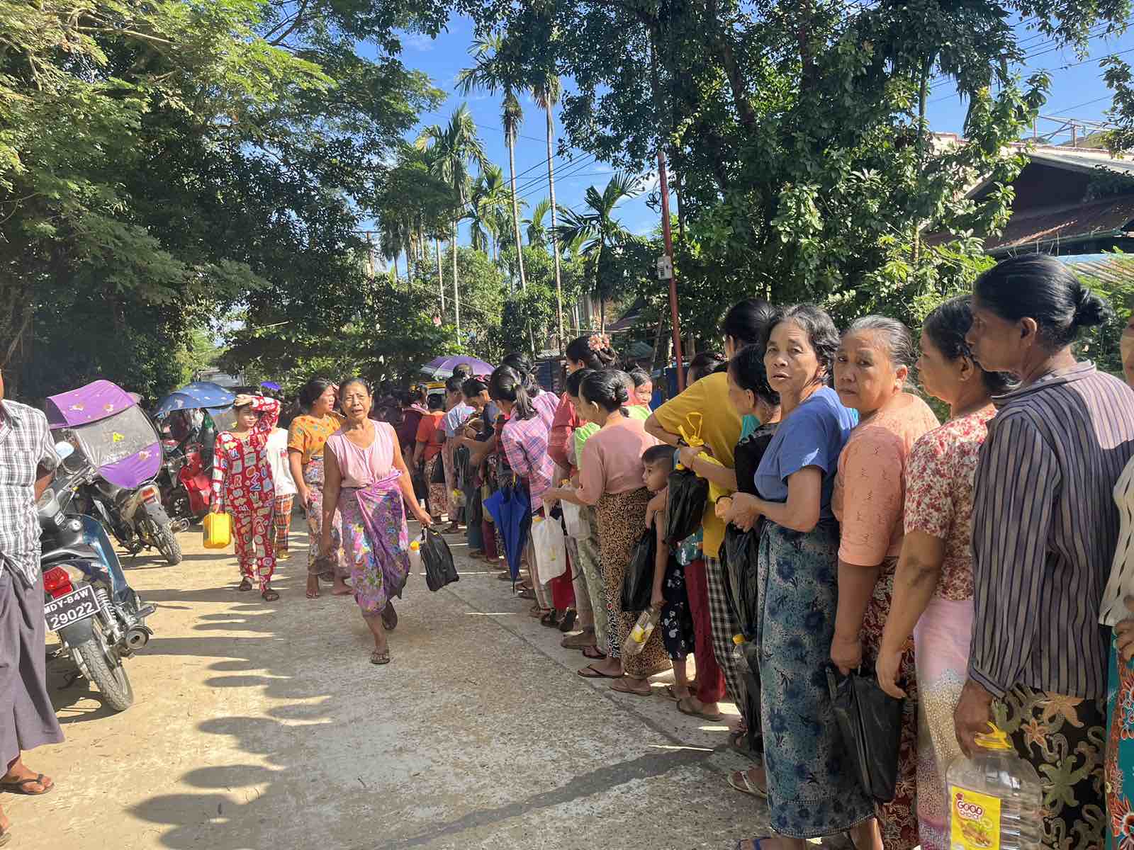 ရခိုင်ပြည်နယ်၊ မောင်တောခရိုင်၊ ဘူးသီးတောင်မြို့၌ မြန်မာ နိုင်ငံဆီကုန်သည်နှင့် ဆီလုပ်ငန်းရှင်များအသင်း အစီအစဉ်ဖြင့် ရခိုင်ပြည်နယ်ဆီကုန်သည်နှင့် ဆီလုပ်ငန်းရှင်များအသင်းမှ စားသုံးသူပြည်သူများသို့ ယမန်နေ့ညနေပိုင်းက အမှတ်(၃)ရပ်ကွက်၊ အုပ်ချုပ်ရေးမှူးရုံးရှေ့ လမ်းမပေါ်၌ စုရပ်ထားရှိကာပြည်သူများသို့ စားသုံးဆီများ လက်လီရောင်းချပေးခဲ့ကြသည်။