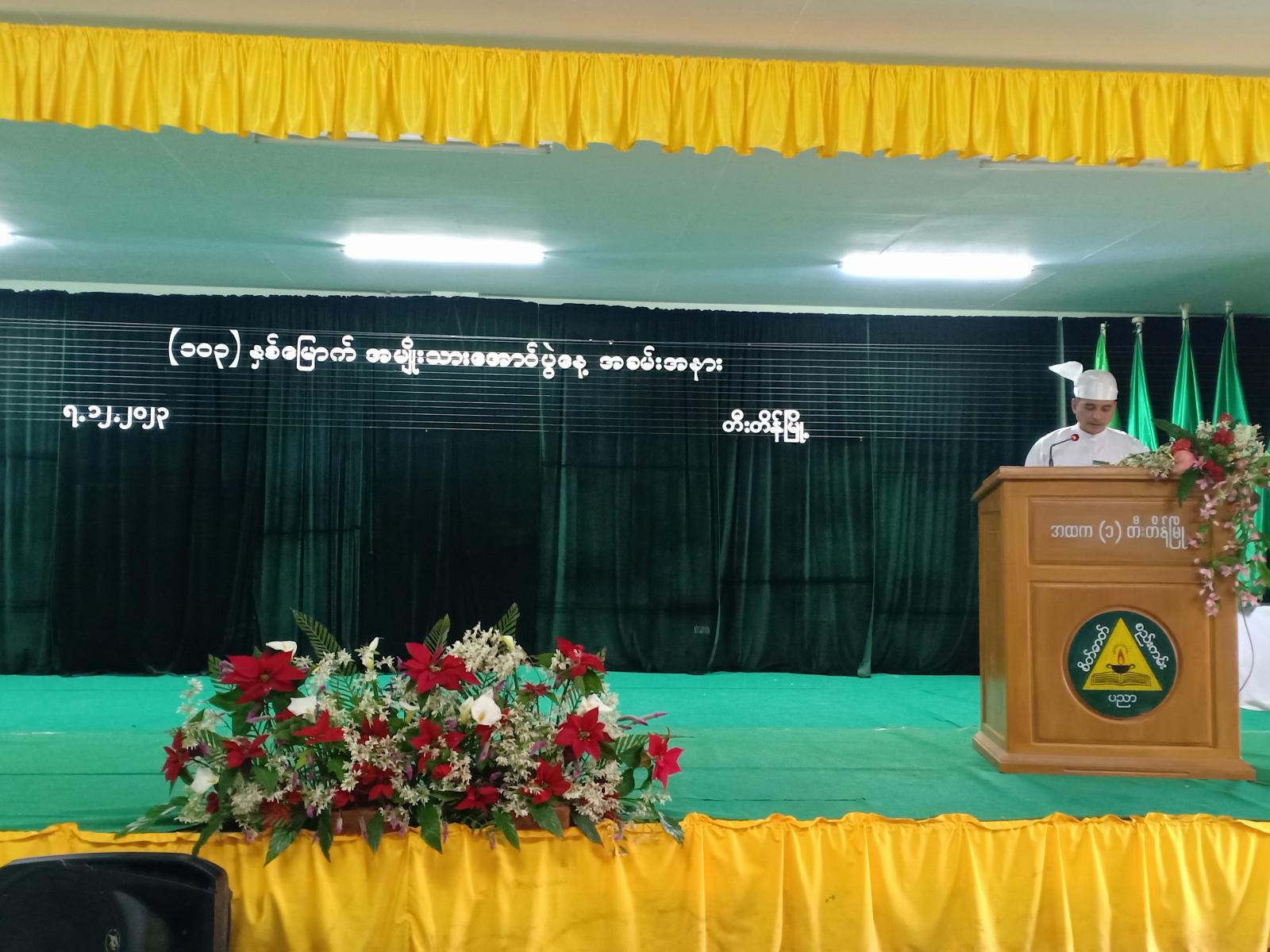 ချင်းပြည်နယ်၊ တီးတိန်ခရိုင်၊ တီးတိန်မြို့၌ (၁၀၃)နှစ်မြောက် အမျိုးသားအောင်ပွဲနေ့ အခမ်းအနားကို တီးတိန် အခြေခံပညာအထက်တန်းကျောင်း အမှတ်(၁) စံကိုက်ညီကျောင်းဆောင်တွင် ယမန်နေ့နံနက် ၁၀ နာရီက ပြုလုပ်ကျင်းပသည်။
