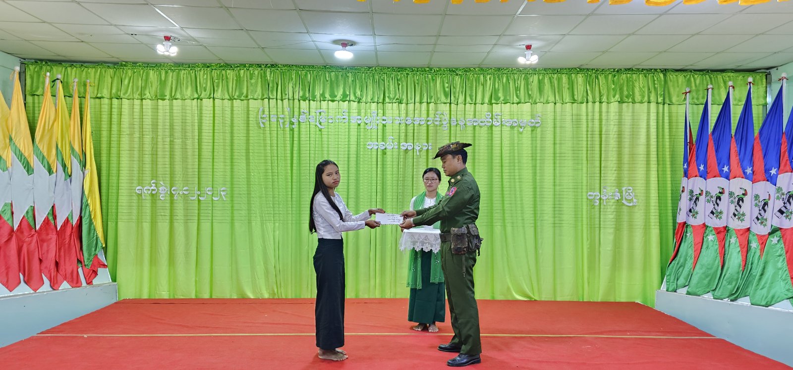 ချင်းပြည်နယ် တွန်းဇံမြို့တွင် (၁၀၃)နှစ်မြောက်အမျိုးသားအောင်ပွဲနေ့ အထိမ်းအမှတ် သဝဏ်လွှာဖတ်ကြားခြင်းနှင့် ဆုချီးမြှင့်ခြင်းအခမ်းအနားကို ဒီဇင်ဘာ(၇)ရက်နေ့ နံနက်(၁၀)နာရီအချိန်က မြို့နယ်အထွေထွေအုပ်ချုပ်ရေးဦးစီးဌာန အစည်းအဝေးခန်းမ၌ ကျင်းပပြုလုပ်သည်။