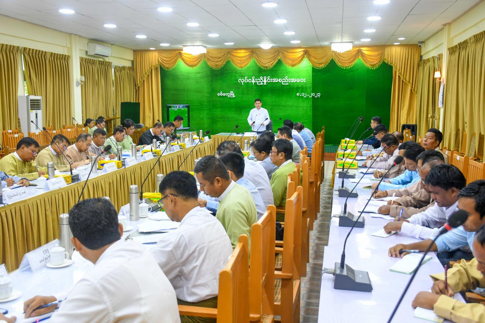 ဆက်လက်၍ ပြည်နယ်လုံခြုံရေးနှင့် နယ်စပ်ရေးရာဝန်ကြီး ဗိုလ်မှူးကြီး ကျော်သူရက ဆောင်းဆီထွက်သီနှံများ အောင်မြင်စွာ စိုက်ပျိုးနိုင်ရေးနှင့် ပတ်သက်၍ နိုင်ငံ့စီးပွားမြှင့်တင်ရေး ရန်ပုံငွေဖြင့် ဆောင်ရွက်မည့် အခြေအနေများကို ရှင်းလင်းတင်ပြသည်။