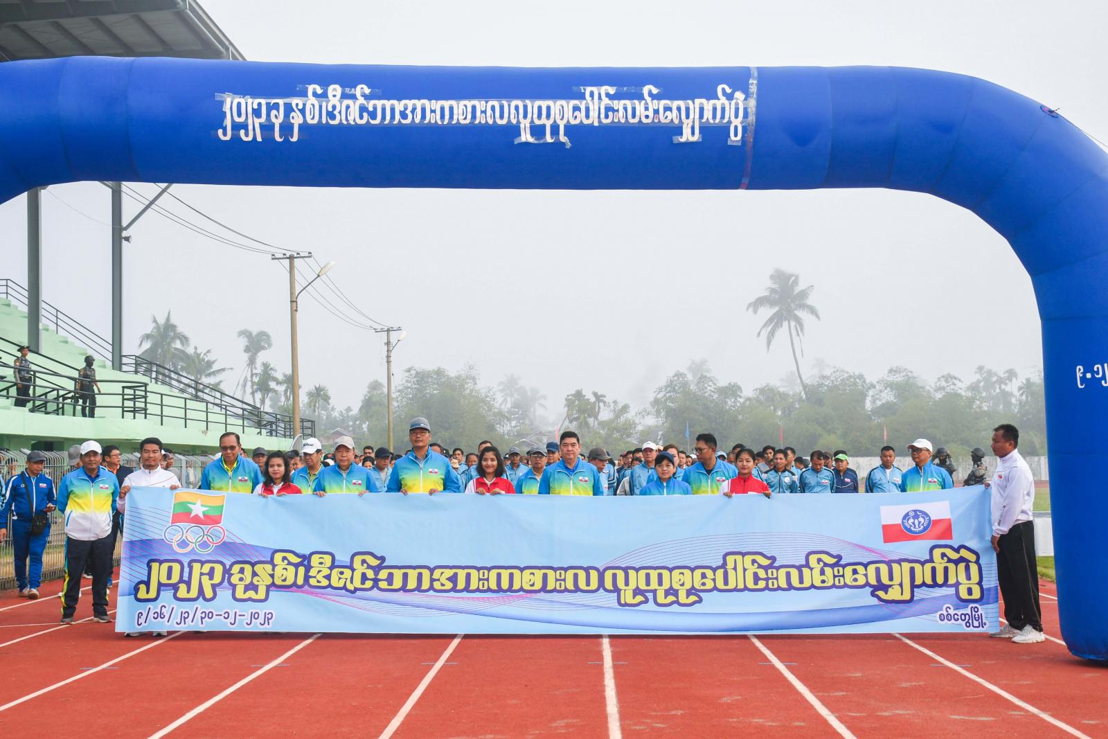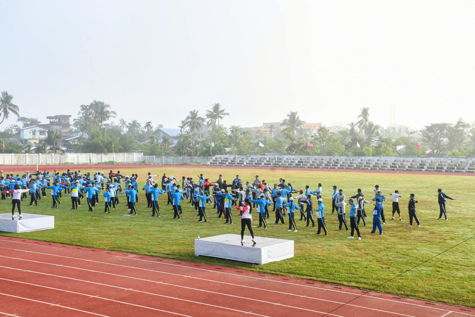 ရခိုင်ပြည်နယ် ဒီဇင်ဘာလူထုအားကစားလ စုပေါင်းလမ်းလျှောက်ပွဲကို စစ်တွေမြို့ ဓညဝတီအားကစားကွင်းတွင် စုပေါင်းဆောင်ရွက်ခဲ့ကြပြီး အားကစားကွင်းပွဲကြည့်စင်ရှေ့၌ စုပေါင်းကိုယ်လက်ကြံခိုင်ရေးလေ့ကျင့်ခန်း အစီအစဉ်များကို ပြုလုပ်ခဲ့ကြသည်။