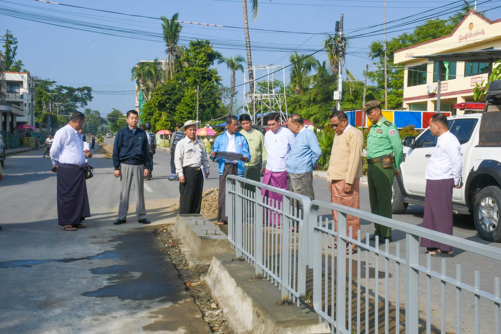 ထို့နောက် ပြည်နယ်ဝန်ကြီးချုပ်နှင့်အဖွဲ့သည် စစ်တွေမြို့၊ မေယုလမ်းအားလောကာနန္ဒာမီးပွိုင့်မှ မင်းဘာကြီး လမ်းဆုံအထိ လမ်းလယ်ကျွန်း အလျား ၁၅၉၀ ပေကို Concrete Block & Handrail ပြုလုပ်နေမှုအား သွားရောက်ကြည့်ရှုစစ်ဆေးကြရာ လမ်းဦးစီးဌာန၊ ပြည်နယ်ဦးစီးမှူး ဦးခင်မောင်မြင့်နှင့် တာဝန်ရှိသူများက လိုက်လံရှင်းလင်းပြသကြသည်။ ပြည်နယ်ဝန်ကြီးချုပ်က လမ်းလယ်ကျွန်း အဆင့်မြှင့်တင်ဆောင်ရွက်ရာတွင် လမ်းမီးများစနစ်တကျတတ်ဆင်နိုင်ရေး ဆောင်ရွက်သွားကြရန်နှင့် အချိန်မီပြီးစီးနိုင်ရေး အလေးထား ဆောင်ရွက်သွားကြရန်မှာကြားသည်။