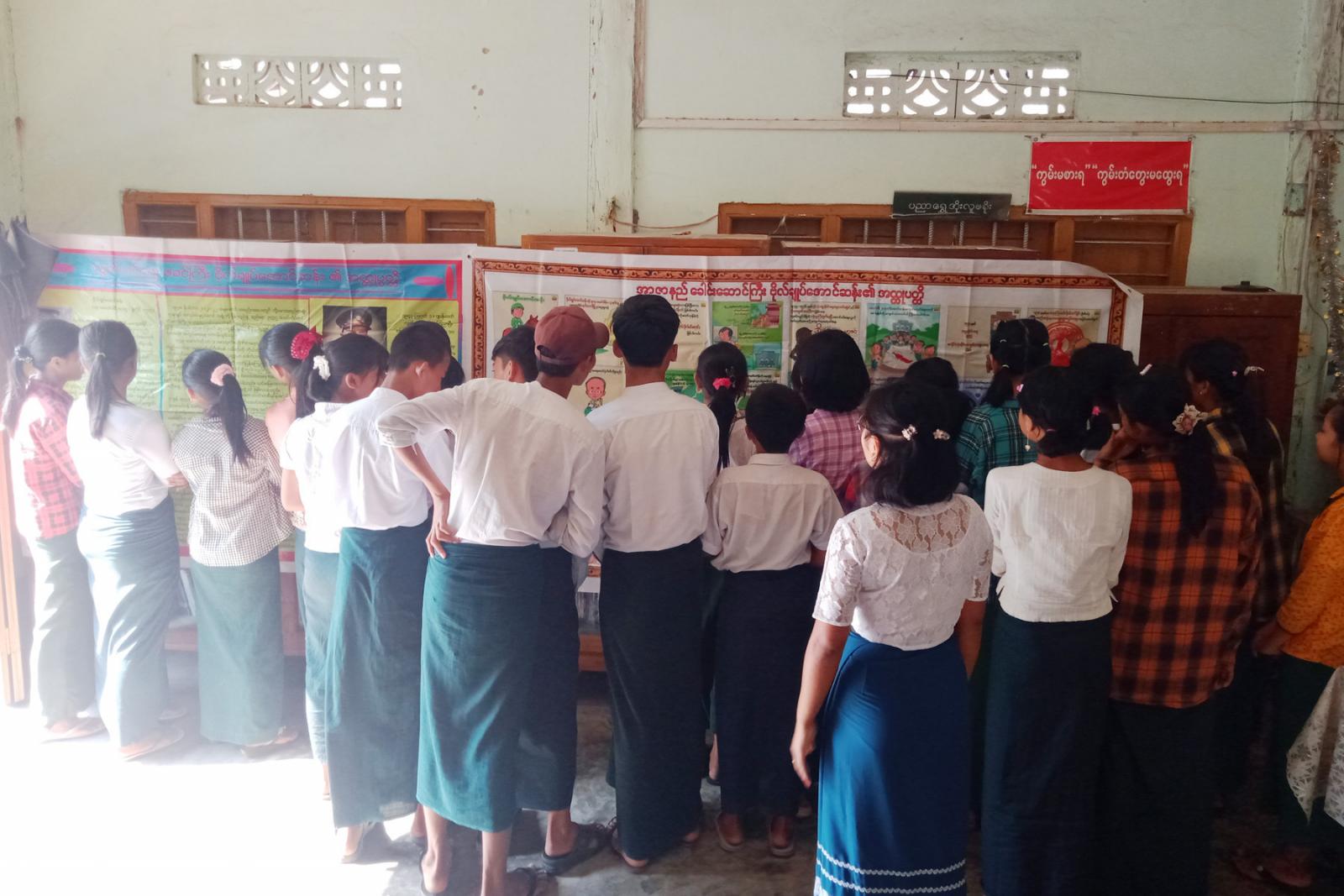 မကွေးတိုင်းဒေသကြီး၊ သရက်ခရိုင်၊ ကံမမြို့နယ် ပြန်ကြားရေးနှင့်ပြည်သူ့ဆက်ဆံရေးဦးစီးဌာန လူထုအခြေပြုဗဟိုဌာန၌ ယမန်နေ့ နေ့လယ် (၂) နာရီက (၇၆) နှစ်မြောက် လွတ်လပ်ရေးနေ့ အထိမ်းအမှတ်အကြို စာအုပ်ပြပွဲ၊ ပုံတူပန်းချီရေးဆွဲပြိုင်ပွဲနှင့် နံရံကပ်စာစောင်ပြပွဲကိုပြုလုပ်ရာ မင်းကုန်း အခြေခံပညာအလယ်တန်းကျောင်း(ခွဲ)မှ ကျောင်းသား ကျောင်းသူများ တက်ရောက်ခဲ့ကြသည်။