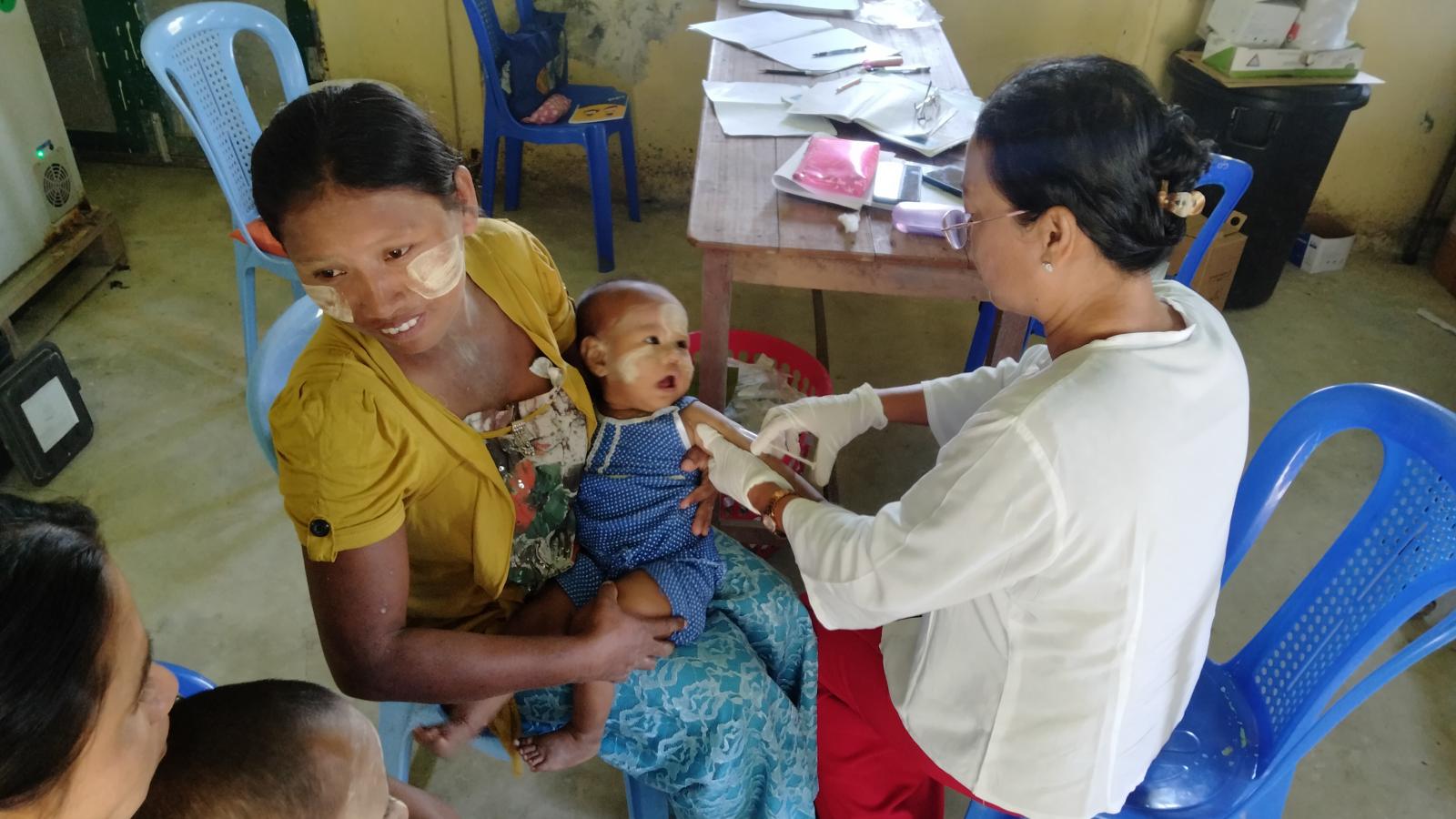 ရခိုင်ပြည်နယ်၊ စစ်တွေခရိုင်၊ ရသေ့တောင်မြို့၌ မြို့ပေါ်ရပ်ကွက်များအတွင်းရှိ ကိုယ်ဝန်ဆောင်အမျိုးသမီးများနှင့် အသက်(၂)လမှ(၂)နှစ်အောက်ကလေးငယ်များ ပုံမှန်ကာကွယ်ဆေး ထိုးနှံတိုက်ကျွေးခြင်းကို ယနေ့နံနက်(၁၁)နာရီအချိန်က မိခင်နှင့်ကလေးကျန်းမာရေးဌာနက ထိုးနှံ တိုက်ကျွေးပေးလျက်ရှိသည်။