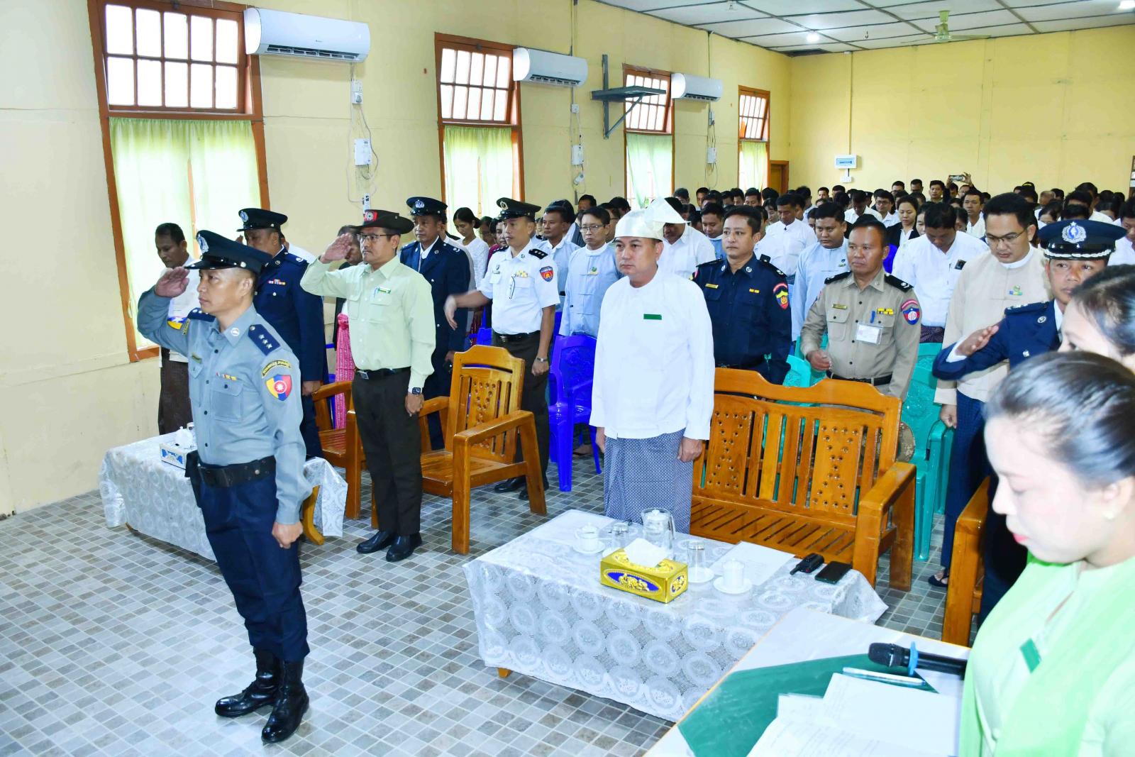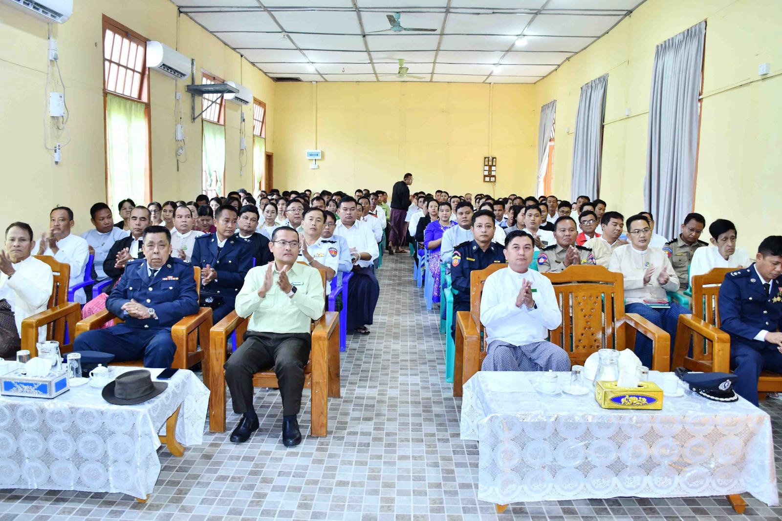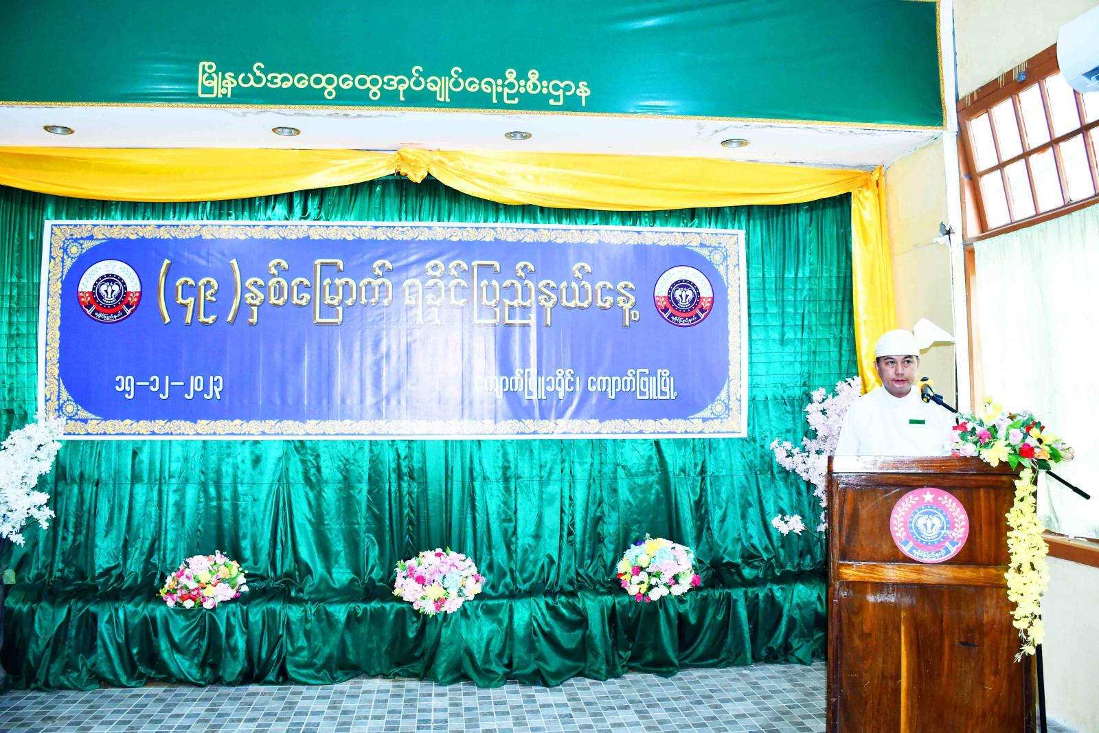 ရခိုင်ပြည်နယ်၊ ကျောက်ဖြူခရိုင်၊ ကျောက်ဖြူမြို့၌ ၂၀၂၃ ခုနှစ်၊ ဒီဇင်ဘာ (၁၅) ရက်နေ့တွင် ကျရောက်သည့် (၄၉) နှစ်မြောက် ရခိုင်ပြည်နယ်နေ့တွင် နိုင်ငံတော်စီမံအုပ်ချုပ်ရေးကောင်စီဥက္ကဋ္ဌ၊ နိုင်ငံတော်ဝန်ကြီးချုပ် ဗိုလ်ချုပ်မှူးကြီး မင်းအောင်လှိုင်ထံမှ ရခိုင်ပြည်နယ်နေ့ အခမ်းအနားသို့ ပေးပို့ သည့် သဝဏ်လွှာ ဖတ်ကြားခြင်း အခမ်းအနားကို ယနေ့ နံနက်(၉) နာရီက မြို့နယ်အထွေထွေအုပ်ချုပ်ရေးမှူးရုံး အစည်းအဝေးခန်းမတွင် ကျင်းပပြုလုပ်သည်။