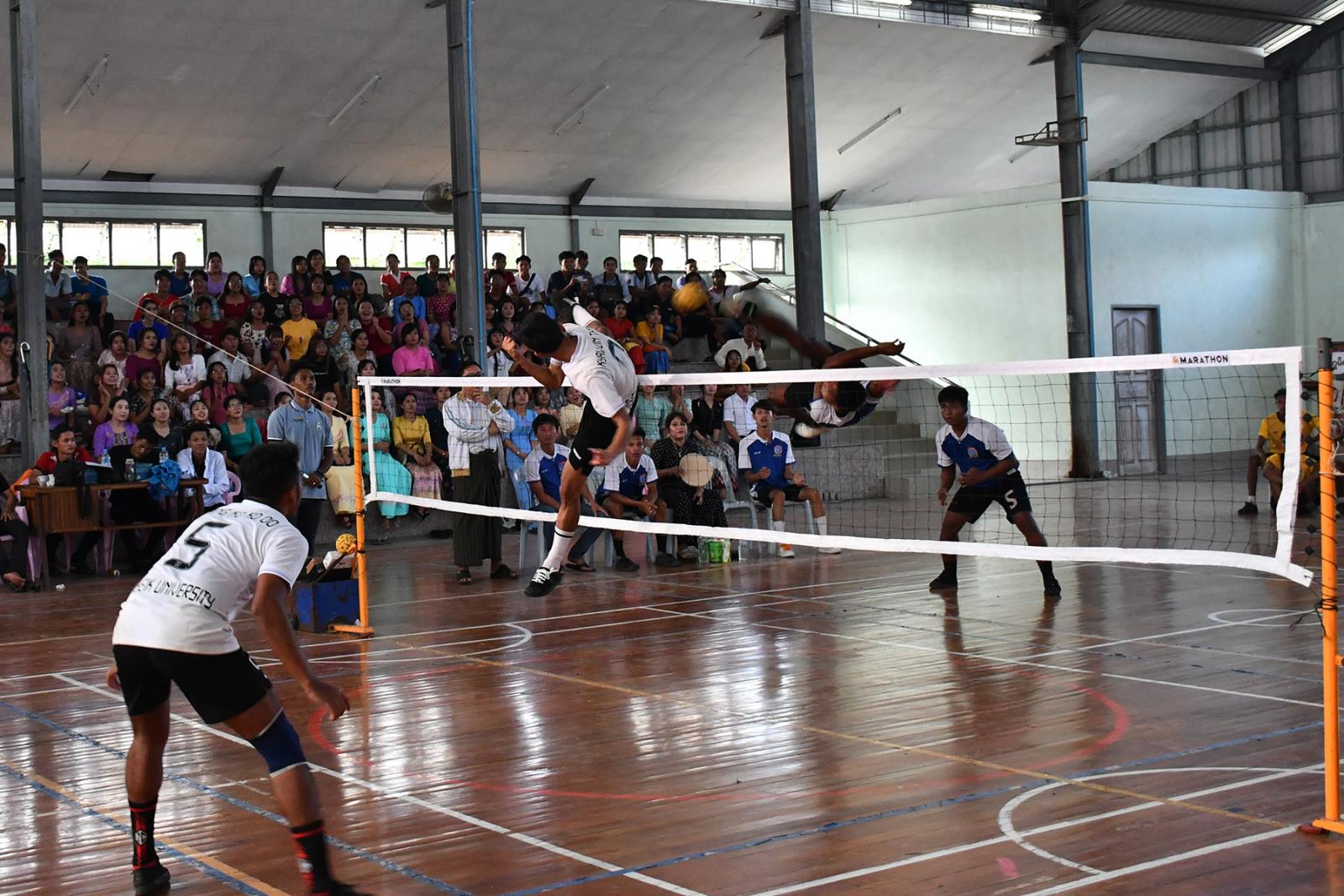 မြိတ်တက္ကသိုလ်တွင် အားကစားကဏ္ဍ ဖွံ့ဖြိုးတိုးတက်စေရန်နှင့် မျိုးဆက်သစ် ပိုက်ကျော်ခြင်း အားကစားသမားများ မွေးထုတ်ပေးနိုင်ရန်အတွက် ကျင်းပလျက်ရှိသော ၂၀၂၃-၂၀၂၄ ပညာသင်နှစ် ဘာသာရပ်ပေါင်းစုံ ပိုက်ကျော်ခြင်း အားကစားပြိုင်ပွဲ ဗိုလ်လုပွဲနှင့် ဆုချီးမြှင့်ပွဲကို ယမန်နေ့ နေ့လယ်ပိုင်းက တက္ကသိုလ်အားကစားခန်းမတွင် ကျင်းပခဲ့သည်။