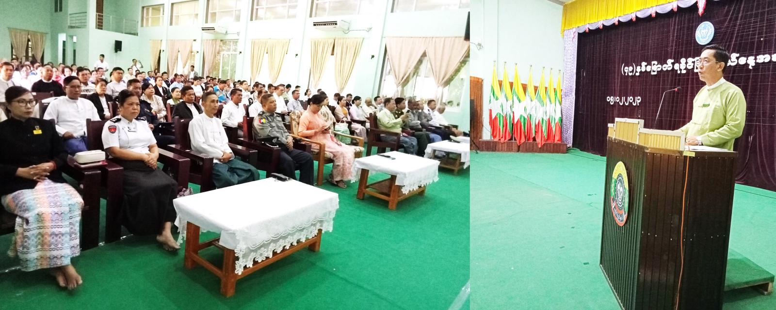 အခမ်းအနားတွင် ပြည်ထောင်စုသမ္မတမြန်မာနိုင်ငံတော် နိုင်ငံတော်စီမံအုပ်ချုပ်ရေးကောင်စီဥက္ကဋ္ဌ နိုင်ငံတော်ဝန်ကြီးချုပ် ဗိုလ်ချုပ်မှူးကြီး သတိုးမဟာသရေစည်သူ သတိုးသီရိသုဓမ္မ မင်းအောင်လှိုင်ထံမှ (၄၉) နှစ်မြောက် ရခိုင်ပြည်နယ်နေ့အခမ်းအနားသို့ ပေးပို့သည့်သဝဏ်လွှာအား ခရိုင်စီမံအုပ်ချုပ်ရေးအဖွဲ့ ဥက္ကဋ္ဌ ဦးမျိုးချစ်ကဖတ်ကြားခဲ့သည်။ အဆိုပါသဝဏ်လွှာ ဖတ်ကြားခြင်းအခမ်းအနားသို့ ခရိုင်/မြို့နယ် ဌာနဆိုင်ရာများ၊ မြို့မိမြိုဖများ၊မြို့နယ်မိခင်နှင့်ကလေး၊ အမျိုးသမီးရေးရာအဖွဲ့ဝင်များ၊ မြို့နယ်ကြက်ခြေနီတပ်ဖွဲ့ဝင်များ တက်ရောက်ခဲ့ကြသည်။