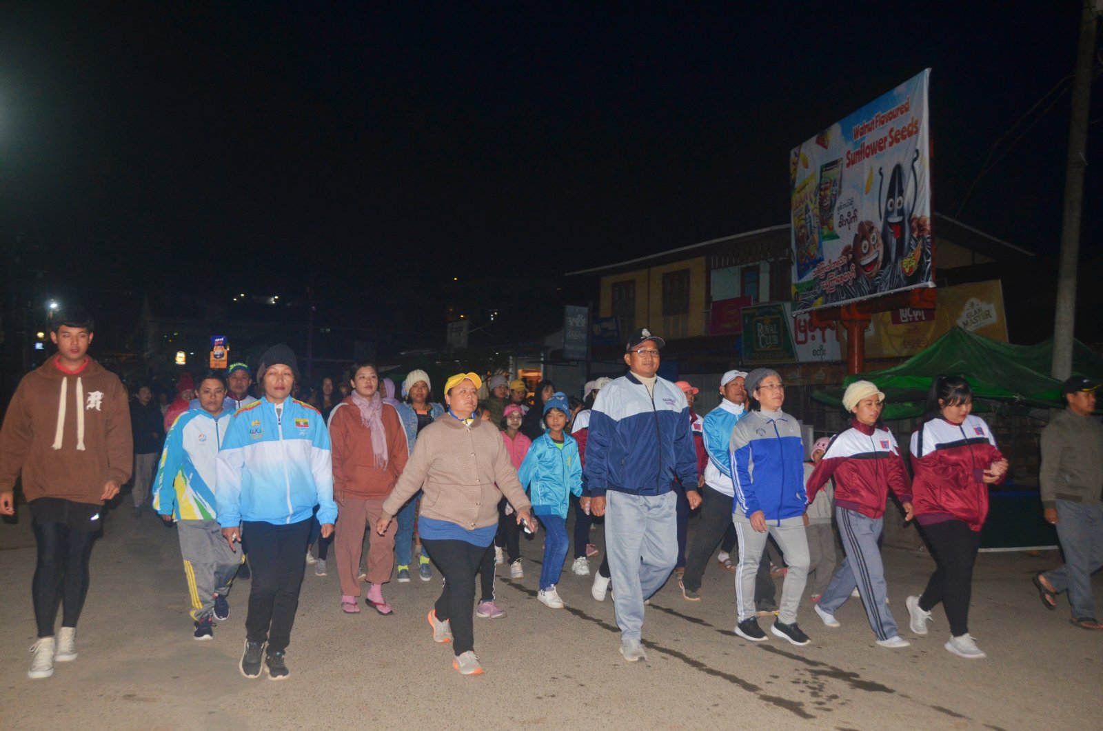 ရှေးဦစွာ အဆိုပါစုပေါင်းလမ်းလျှောက်သူများသည် သက်ဆိုင်ရာစုရပ်များမှတစ်ဆင့် တစ်ပျော်တစ်ပါး စုပေါင်းလမ်းလျှောက်ခဲ့ကြပြီး စုပေါင်းကိုယ်လက်ကြံ့ခိုင်ရေးလေ့ကျင့်ခန်းများကိုလည်း ပျော်ရွှင်စွာ စုပေါင်းဆောင်ရွက်ခဲ့ကြကြောင်း၊ စုပေါင်းလမ်းလျှောက်သူများအား ဌာနဆိုင်ရာများ၊ အလှူရှင် များကလည်း နံနက်စာ ကောက်ညှင်းပေါင်း၊ လက်ဖက်ရည်၊ ကော်ဖီ၊ အားဖြည့်အချိုရည် အစရှိသည့်မုန့်များဖြင့် ကျွေးမွေးခဲ့ကြကြောင်း၊ စုပေါင်းလမ်းလျှောက်ခြင်းကို သက်ဆိုင်ရာခရိုင်/ မြို့နယ် စီမံအုပ်ချုပ်ရေးအဖွဲ့ ဥက္ကဋ္ဌများနှင့် အဖွဲ့ဝင်များ၊ ခရိုင်/မြို့နယ် ဌာနဆိုင်ရာဝန်ထမ်းများ၊ လူမှုရေးအသင်းအဖွဲ့များ၊ ရပ်ကွက်အုပ်ချုပ်ရေးမှူးများနှင့် ဒေသခံပြည်သူများ တစ်ပျော်တစ်ပါး ပါဝင်ဆင်နွှဲခဲ့ကြကြောင်း သိရသည်။