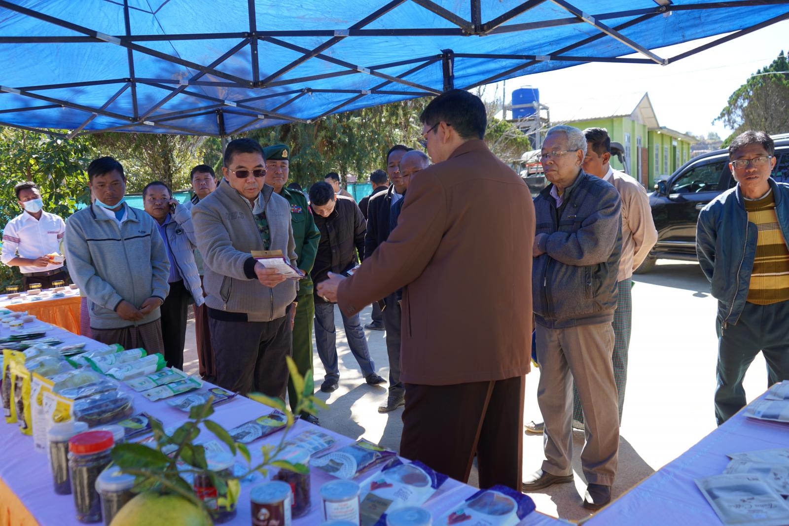ချင်းပြည်နယ်ဝန်ကြီးချုပ် ဒေါက်တာဝုန်ဆွန်းထန်သည် ပြည်နယ်အစိုးရအဖွဲ့ဝင်ဝန်ကြီးများ၊ ပြည်နယ်ဥပဒေချုပ်နှင့် ပြည်နယ်အစိုးရအဖွဲ့အတွင်းရေးမှူးတို့နှင့်အတူ ယမန်နေ့နံနက် ၁၀ နာရီက ဟားခါးမြို့၊ ကျောဘုတ်ရပ်ကွက် ချင်းပြည်နယ် စိုက်ပျိုးရေးဦးစီးဌာန၏ ကျောဘုတ်ဥယျာဉ်ရှိ ချင်းပြည်နယ်အတွင်း စားရေရိက္ခာဖူလုံရေးနှင့် စိုက်ပျိုးရေးကဏ္ဍဖွံ့ဖြိုးရေးအတွက် ဆောင်ရွက်ထားရှိမှု အခြေအနေများကို ကြည့်ရှုအားပေးသည်။