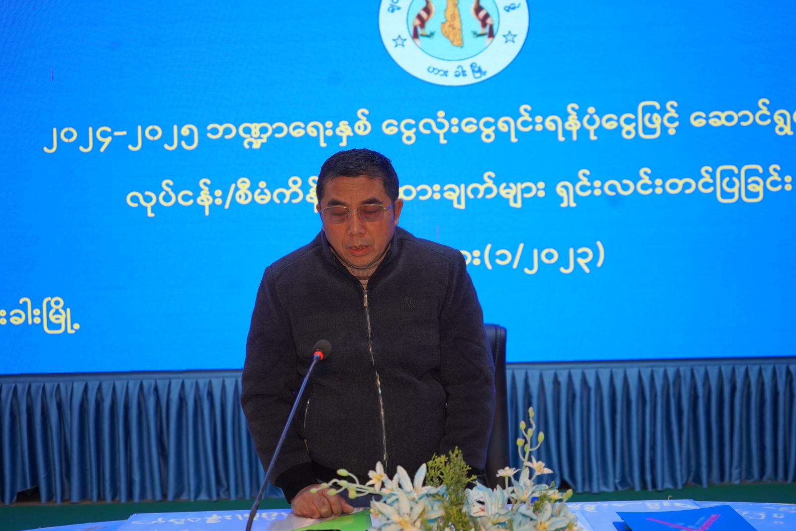 ထို့နောက် ပြည်နယ်စီမံကိန်းဦးစီးဌာနမှ ပြည်နယ်ဦးစီးမှူး ဦးသန်းအောင်နှင့် ပြည်နယ်ရသုံးမှန်းခြေငွေစာရင်းဦးစီးဌာနမှ ပြည်နယ်ဦးစီးမှူး ဦးကျော်ဇင်ဦးတို့က ချင်းပြည်နယ်၏ မျှော်မှန်းချက်၊ ရည်မှန်းချက်၊ မူဝါဒ၊ ၂၀၂၄−၂၀၂၅ ဘဏ္ဍာရေးနှစ် ပြည်ထောင်စုနှင့် ပြည်နယ်ဘဏ္ဍာရန်ပုံငွေဖြင့် ဆောင်ရွက်နိုင်ရန်အတွက် ဌာနအလိုက် အဆိုပြုလျာထားနှုနှင့် ယယီစိစစ်မှုအခြေအနေ၊ ဌာနတစ်ခုချင်း၏ နှစ်အလိုက်ဘဏ္ဍာငွေရရှိမှုနှင့် ၂၀၂၄−၂၀၂၅ ဘဏ္ဍာရေးနှစ်အတွက် ဌာန၏အဆိုပြုတင်ပြချက်နှင့် ယာယီစိစစ်မှုအခြေအနေများကို ရှင်းလင်းတင်ပြကြသည်။