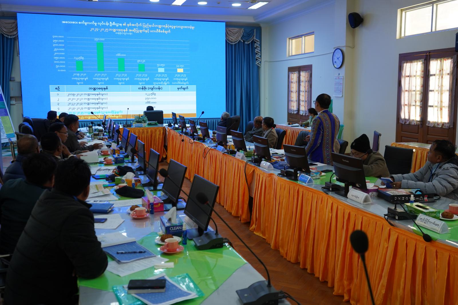 ယင်းနောက် ပြည်နယ်အသေးစားစက်မှုလက်မှုလုပ်ငန်း၊ သစ်တောဦးစီးဌာန၊ အားကစားနှင့် ကာယပညာဦးစီးဌာန၊ မြို့ပြနှင့်အိမ်ရာဖွံ့ဖြိုးရေးဦးစီးဌာန၊ ကျေးလက်ဒေသဖွံ့ဖြိုးတိုးတက်ရေး ဦးစီးဌာန၊ အမှတ်(၃)ကုန်းမြင့် ဒေသလယ်ယာမြေဖော်ထုတ်ရေးစီမံကိန်းရုံးနှင့် ဆည်မြောင်းနှင့်ရေ အသုံးချမှု စီမံခန့်ခွဲရေးဦးစီးဌာနတို့မှ ပြည်နယ်ဦးစီးမှူးများက ၂၀၂၄−၂၀၂၅ ဘဏ္ဍာရေးနှစ်အတွင်း ငွေလုံးငွေရင်းရန်ပုံငွေဖြင့်ဆောင်ရွက်မည့် လုပ်ငန်း/စီမံကိန်းလျာထားချက်များကို လုပ်ငန်းစီမံကိန်း တစ်ခုချင်းစီအလိုက် Power Point ဖြင့် အသေးစိတ် ရှင်းလင်းတင်ပြကြသည်။