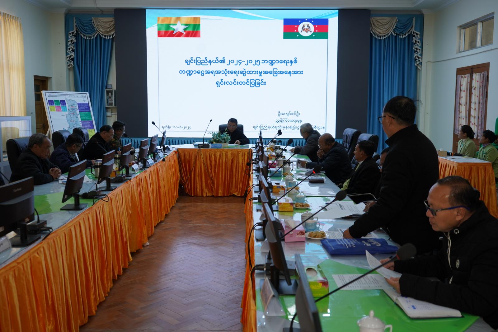 ထို့နောက် ပြည်နယ်စီမံကန်းရေးဆွဲရေးဦးစီးဌာနမှ ညွှန်ကြားရေးမှူး ဦးသန်းအောင်နှင့် ပြည်နယ်ရသုံးမှန်းခြေငွေစာရင်းဦးစီးဌာနမှ ညွှန်ကြားရေးမှူး ဦးကျော်ဇင်ဦးတို့က ချင်းပြည်နယ်၏ ၂၀၂၄-၂၀၂၅ ဘဏ္ဍာငွေအရအသုံးရေးဆွဲထားမှုအခြေအနေ၊ ဘတ်ဂျက်ရေးဆွဲခြင်းနှင့် စိစစ်ခြင်းအတွက် နိုင်ငံတော်အစိုးရ၏ မူဝါဒ၊ ပြည်နယ်အစိုးရ၏ မူဝါဒ၊ ပြည်ထောင်စုအစိုးရအဖွဲ့၏ လမ်းညွှန်ချက်၊ ပြည်နယ်စီမံကိန်းနှင့် ဘက်ဂျက်စိစစ်ရေးကော်မတီ၏ စိစစ်ချက်၊ ဘဏ္ဍာရေးကျင့်စဉ်ကြီးများ၊ ချင်းပြည်နယ်ဖွံ့ဖြိုးတိုးတက်ရေးအတွက် ဘဏ္ဍာငွေခွဲဝေလျာထားမှု အခြေအနေတို့ကို Power Point ဖြင့် အသေးစိတ်ရှင်းလင်းတင်ပြကြသည်။
