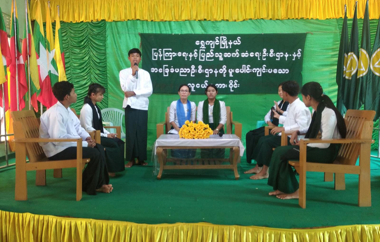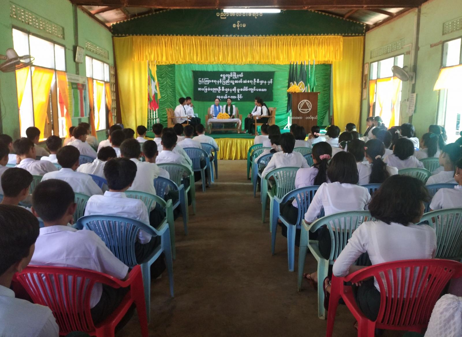 အဆိုပါဆွေးနွေးပွဲတွင် ကျောင်းသား၊ ကျောင်းသူများက တစ်ဦးချင်းမိတ်ဆက်ခဲ့ပြီး လူငယ်စကားဝိုင်းအားစတင်ခဲ့ရာ ဦးဆောင်ဆွေးနွေးသူအဖြစ် ပြန်ကြားရေးနှင့်ပြည်သူ့ဆက်ဆံရေးဦးစီးဌာန ဦးစီးအရာရှိ ဒေါ်သဲစုဆောင်နှင့် ကျောင်းအုပ်ဆရာမကြီး ဒေါ်စန်းစန်းနွယ်တို့ပါဝင်ပြီး Grade (9) မှ ကျောင်းသား မောင်ဘုန်းမင်းခန့် ဦးဆောင်သောအဖွဲ့က လူငယ်နှင့်ပေါင်းသင်းဆက်ဆံရေး၊ Grade (9) မှ မကြယ်စင်လင်း ခေါင်းဆောင်သောအဖွဲ့က လူငယ်နှင့် ယဥ်ကျေးမှု အစရှိသည့် အကြောင်းအရာများအား ခေါင်းစဉ်အလိုက် ဆွေးနွေးသွားခဲ့ကြသည်။ အဆိုပါ ဆွေးနွေးပွဲသို့ တက်ရောက်လာသော ကျောင်းသား၊ ကျောင်းသူများမှ မိမိတို့သိရှိလိုသည့် အကြောင်းအရာများအား မေးမြန်းဆွေးနွေးကြရာ သက်ဆိုင်ရာ ခေါင်းစဥ်အလိုက် ကျောင်းသား၊ ကျောင်းသူလေးများက ပြန်လည်ဆွေးနွေးခဲ့ကြကြောင်း သိရသည်။