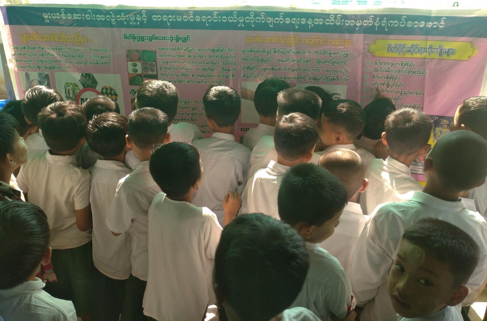 ဆွေးနွေးပွဲသို့ ပြန်ကြားရေးနှင့်ပြည်သူ့ဆက်ဆံရေးဦးစီးဌာန မြို့နယ်ဦးစီးမှူးနှင့် ဝန်ထမ်းများ၊ ဆရာ၊ ဆရာမများ၊ ကျောင်းသား၊ ကျောင်းသူ (၁၂၀) ဦးတို့ တက်ရောက်ခဲ့ပြီး ပြန်ကြားရေးနှင့်ပြည်သူ့ဆက်ဆံရေးဦးစီးဌာနမှ ပြသထားသော နံရံကပ်စာစောင်များအား ကျောင်းသား၊ ကျောင်းသူများမှ စိတ်ဝင်တစားကြည့်ရှုခဲ့ကြကြောင်း သိရသည်။