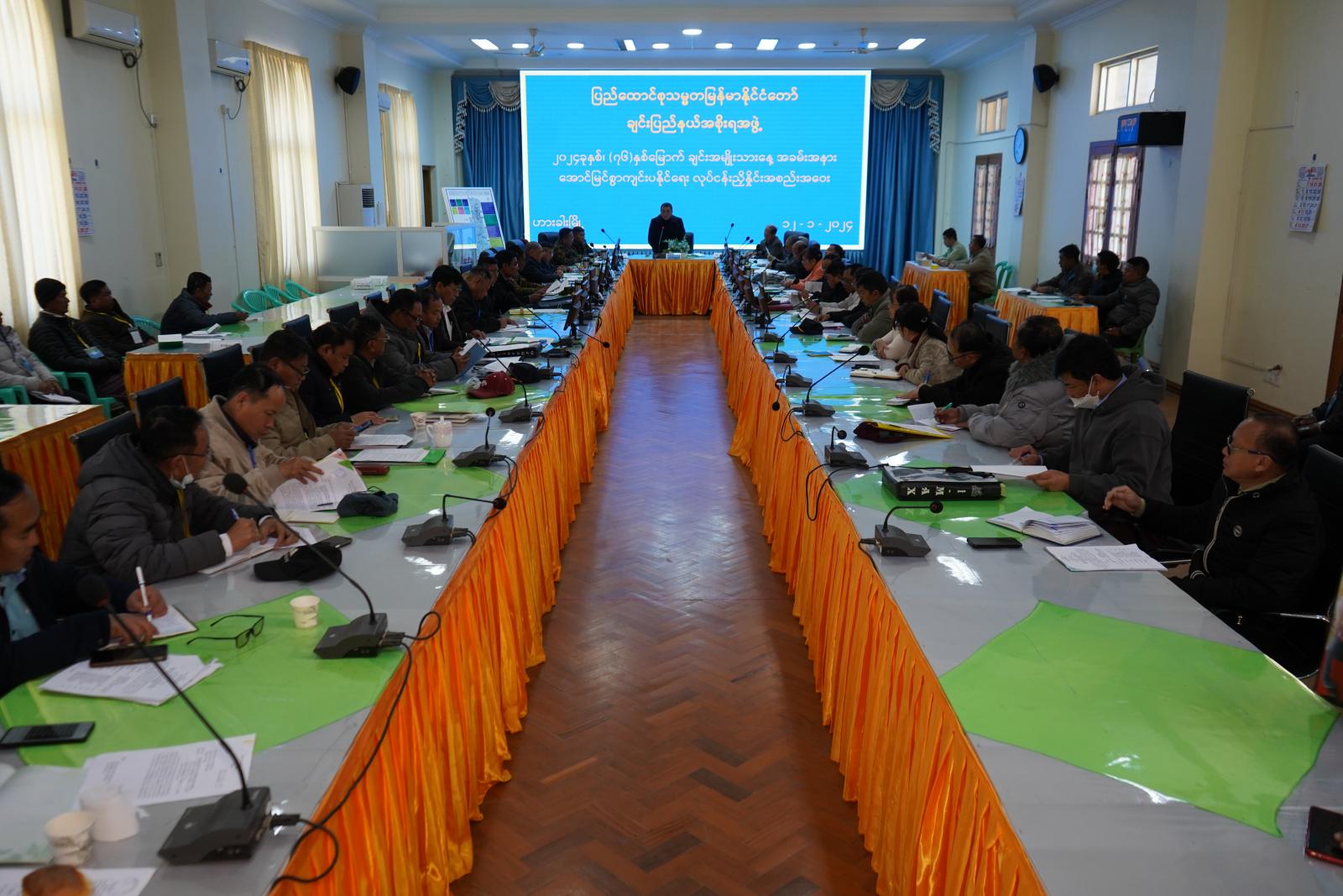 ထို့နောက် (၇၆)နှစ်မြောက် ချင်းအမျိုးသားနေ့အောင်မြင်စွာကျင်းပနိုင်ရေး မုခ်ဦးဖွင့်ပွဲကျင်းပ နိုင်ရေးလုပ်ငန်းကော်မတီ၊ ဂုဏ်ထူးဆောင်လက်မှတ်များနှင့် ဆုပစ္စည်းများချီးမြှင့်နိုင်ရေးဆပ်ကော်မတီ၊ ဆုချီးမြှင့်ရေးအထောက်အကူပြု လုပ်ငန်းကော်မတီ၊ ပြခန်းကျင်းပရေးဆပ်ကော်မတီ၊ ဖွင့်ပွဲပိတ်ပွဲကျင်းပရေးဆပ်ကော်မတီ၊ ချင်းရိုးရာအခမ်းအနား ပြင်ဆင်ရေးနှင့် ဝတ်စားဆင်ယင်မှုဆပ်ကော်မတီ၊ အရေးကြီးပုဂ္ဂိုလ်များဖိတ်ကြားရေးနှင့် ကြိုဆိုနေ့ရာချထားရေး ဆပ်ကော်မတီ၊ ဘဏ္ဍာရေး ဆပ်ကော်မတီ၊ သယ်ယူပို့ဆောင်ရေးဆပ်ကော်မတီ၊ စာတမ်းမှတ်တမ်းပြုစုရေးဆပ်ကော်မတီ၊ ပြန်ကြားရေးနှင့်သတင်းထုတ်ပြန်ရေးဆပ်ကော်မတီ၊ ကျန်းမာရေးဆပ်ကော်မတီ၊ လုံခြုံရေးဆပ်ကော်မတီ၊ စာရင်းစစ်ဆေးရေးဆပ်ကော်မတီ၊ ကြိုဆိုနေရာချထားရေးနှင့် ဧည့်ခံကျွေးမွေးရေးဆပ်ကော်မတီနှင့် ပြပွဲ၊ပြိုင်ပွဲများကျင်းပနိုင်ရေးဆပ်ကော်မတီတို့မှ ကော်မတီဥက္ကဋ္ဌနှင့်အတွင်းရေးမှူးများကဆောင်ရွက်ပြီး၊ ဆောင်ရွက်ဆဲနှင့် ညှိနှိုင်းပေါင်းစပ်ဆောင်ရွက်ပေးရန် လိုအပ်သည့်အချက်များကို Power Point ဖြင့် ရှင်းလင်းတင်ပြကြသည်။