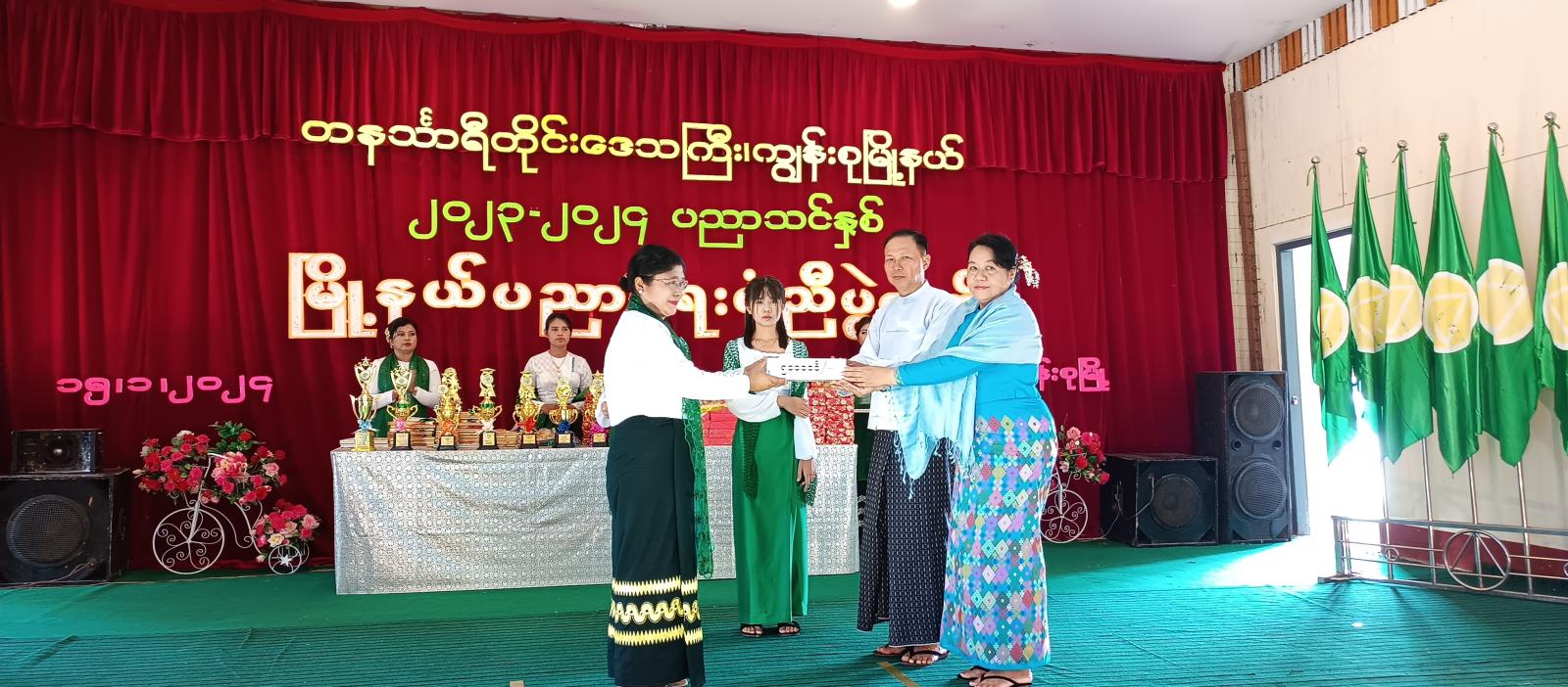 ဆက်လက်၍ ၂၀၂၃-၂၀၂၄ ပညာသင်နှစ်တွင် ပညာရေးဝန်ကြီးဌာနမှ ချီးမြှင့်သော ကမ္ဘာ့ဆရာများနေ့ အထိမ်းအမှတ် ထူးချွန်ဆရာများ ဂုဏ်ပြုပွဲ အခမ်းအနားတွင် ထူးချွန်ဆရာဆု ရရှိခဲ့သော အ.ထ.က ပထက်ကျောင်းမှ ကျောင်းအုပ်ကြီး ဒေါ်မေမြင့်လွင်အားလည်းကောင်း၊ ၂၀၂၂-၂၀၂၃ ပညာသင်နှစ်၊ နိုင်ငံတော်အဆင့် လူရည်ချွန်ဖြစ်အောင် မွေးထုတ်ပေးခဲ့သော အထက ကတ္တလူကျောင်းမှ ကျောင်းအုပ်ကြီးနှင့် ဆရာ၊ ဆရာမများ၊ နိုင်ငံတော်အဆင့် လူရည်ချွန် ရွေးချယ်ခြင်း ခံရသော Grade – 11 ကျောင်းသား မောင်ထူးခြားအားလည်းကောင်း၊ တက္ကသိုလ်ဝင်စာမေးပွဲတွင် အောင်ချက်ရာခိုင်နှုန်း အကောင်းဆုံး ရရှိခဲ့သည့် ကျောင်းများ၊ ၂၀၂၂ - ၂၀၂၃ ပညာသင်နှစ် နှင့် ၂၀၂၃ - ၂၀၂၄ ပညာသင်နှစ်တို့တွင် တိုင်းဒေသကြီးအဆင့်၊ ခရိုင်အဆင့်၊ မြို့နယ်အဆင့် စာစီစာကုံး၊ ကဗျာနှင့် ကျပန်းစကားပြောပြိုင်ပွဲ၊ ကွန်ပျုတာပန်းချီ၊ ကာတွန်း၊ အင်္ဂလိပ်စာစွမ်းရည်ပြိုင်ပွဲ၊ သင်္ချာစွမ်းရည်ပြိုင်ပွဲနှင့် အားကစားပြိုင်ပွဲများတွင် ဆုရရှိသူများအား တနင်္သာရီရေတပ်စခန်းဌာနချုပ်၊ ဌာနချုပ်မှူး ဗိုလ်မှူးချုပ် သိန်းထူးနှင့် ဇနီး ဒေါက်တာ ဒေါ်အေးစိုး၊ မြို့နယ်စီမံအုပ်ချုပ်ရေးအဖွဲ့ဥက္ကဋ္ဌ ဦးအောင်စန်းဝင်းနှင့် အဖွဲ့ဝင်များ၊ ဌာနဆိုင်ရာ အကြီးအကဲများနှင့် တာဝန်ရှိသူများက ဆုများ အသီးသီး ချီးမြှင့်ပေးအပ်ခဲ့ပြီး မြို့နယ်အတွင်းရှိ အခြေခံပညာကျောင်းများ အသီးသီးမှ ချမ်းမြေ့ပါစေ၊ အခြေခံကဗျာလွတ် အက၊ ရတနာပုံ၊ ယောသူတို့ရွာ၊ မြန်မာအမျိုးသမီး အလှထီးယိမ်းအက၊ ထာဝရမြန်မာ၊ ခေတ်(၆)ခေတ် အက၊ စကားဝါမြေ စသည့် သီချင်းများဖြင့် သီဆိုဖျော်ဖြေကပြခဲ့ကြရာ တနင်္သာရီရေတပ်စခန်းဌာနချုပ်၊ ဌာနချုပ်မှူး ဗိုလ်မှူးချုပ် သိန်းထူးနှင့်ဇနီး ဒေါက်တာ ဒေါ်အေးစိုး၊ အရာရှိများ၊ မြို့နယ်စီမံအုပ်ချုပ်ရေးအဖွဲ့ဥက္ကဋ္ဌ ဦးအောင်စန်းဝင်းနှင့် အဖွဲ့ဝင်များ၊ မြို့နယ်ပညာရေးမှူး ဒေါ်ဝင်းမာ၊ မြို့နယ်အတွင်းရှိ အခြေခံပညာကျောင်းများမှ ကျောင်းအုပ်ဆရာကြီး/ ဆရာမကြီးများ၊ ဆရာ/မများ၊ ကျောင်းသားမိဘများနှင့် ဆုရကျောင်းသား/သူများက ကြည့်ရှုအားပေးခဲ့ကြကာ ဆုတော်ငွေများ ချီးမြှင့်ပေးအပ်ခဲ့ကြောင်း သိရသည်။