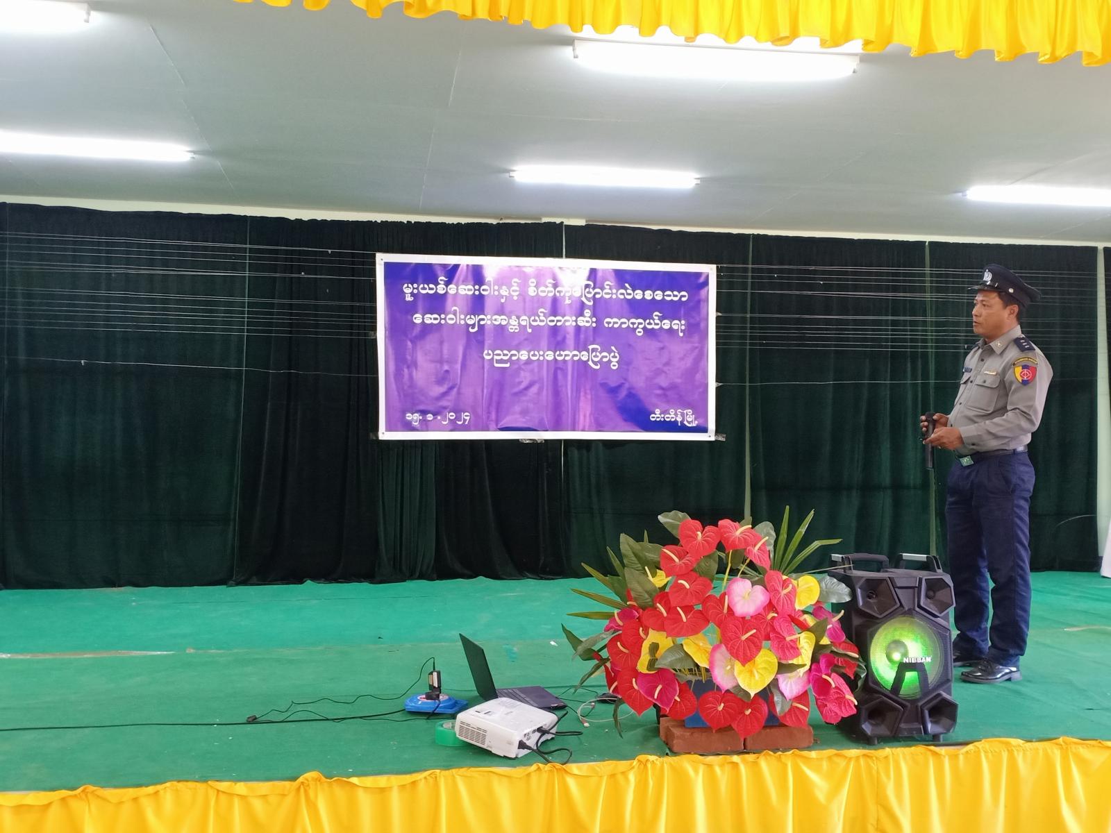 ရှေးဦးစွာ မြို့နယ်စီမံအုပ်ချုပ်ရေးအဖွဲ့ဥက္ကဋ္ဌ ဦးဖြိုးဝင်းသန်းကအမှာစကား ပြောကြားကာမြို့နယ်ရဲတပ်ဖွဲ့မှူးရဲမှူးသန်းထွေး၊ မြို့နယ်ဆရာဝန်ကြီးဒေါက် တာဝင်းဖြိုးဟန်နှင့်တီးတိန်မြို့၊ မြို့မရဲစခန်းမှူးဒုရဲမှူးရဲသူရတို့ကမူးယစ်ဆေး ဝါးနှင့်စိတ်ကို ပြောင်းလဲစေသောဆေးဝါးများ အန္တရာယ်တားဆီးကာကွယ်ရေးအကြောင်းများ ဟောပြောကြသည်။