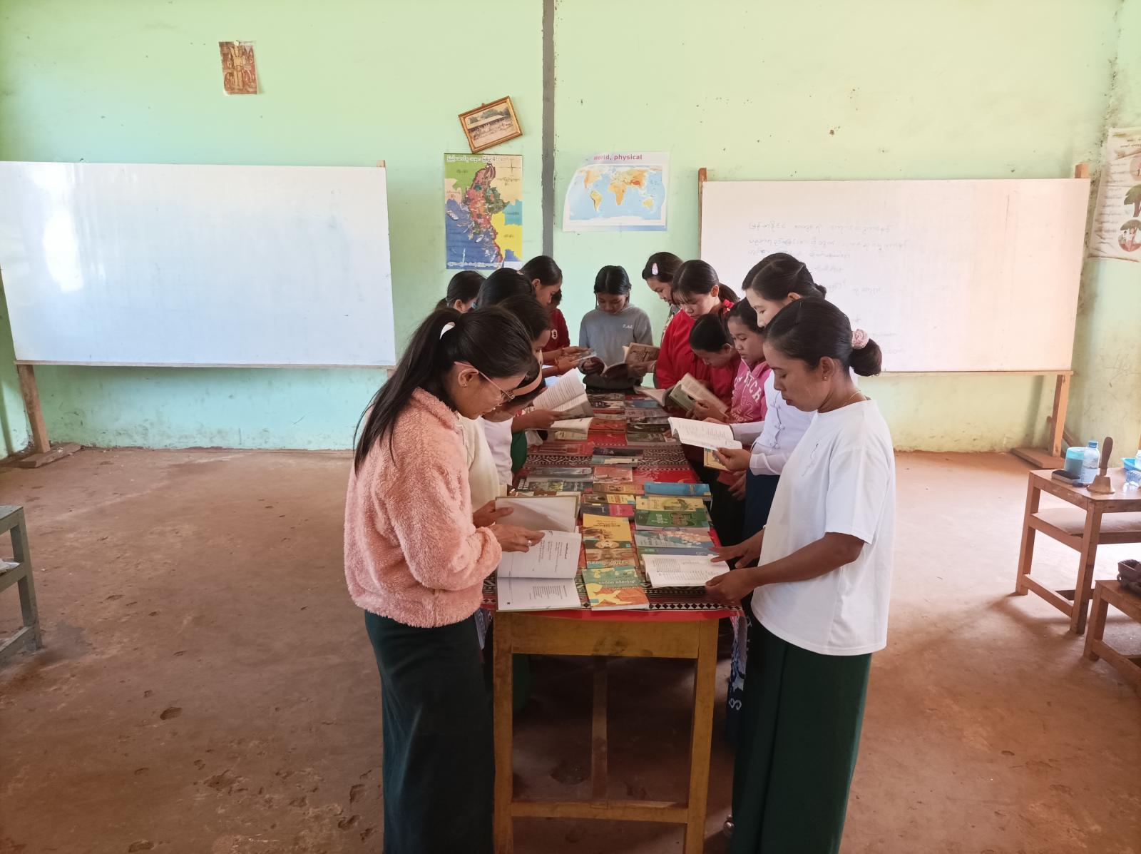 ထို့နောက် ကျောင်းသား၊ ကျောင်းသူများက ခင်းကျင်းပြသထားသည့် စာအုပ်စာစောင်များကို စိတ်ပါဝင်စားစွာ လေ့လာဖတ်ရှုခဲ့ကြကြောင်း သိရသည်။