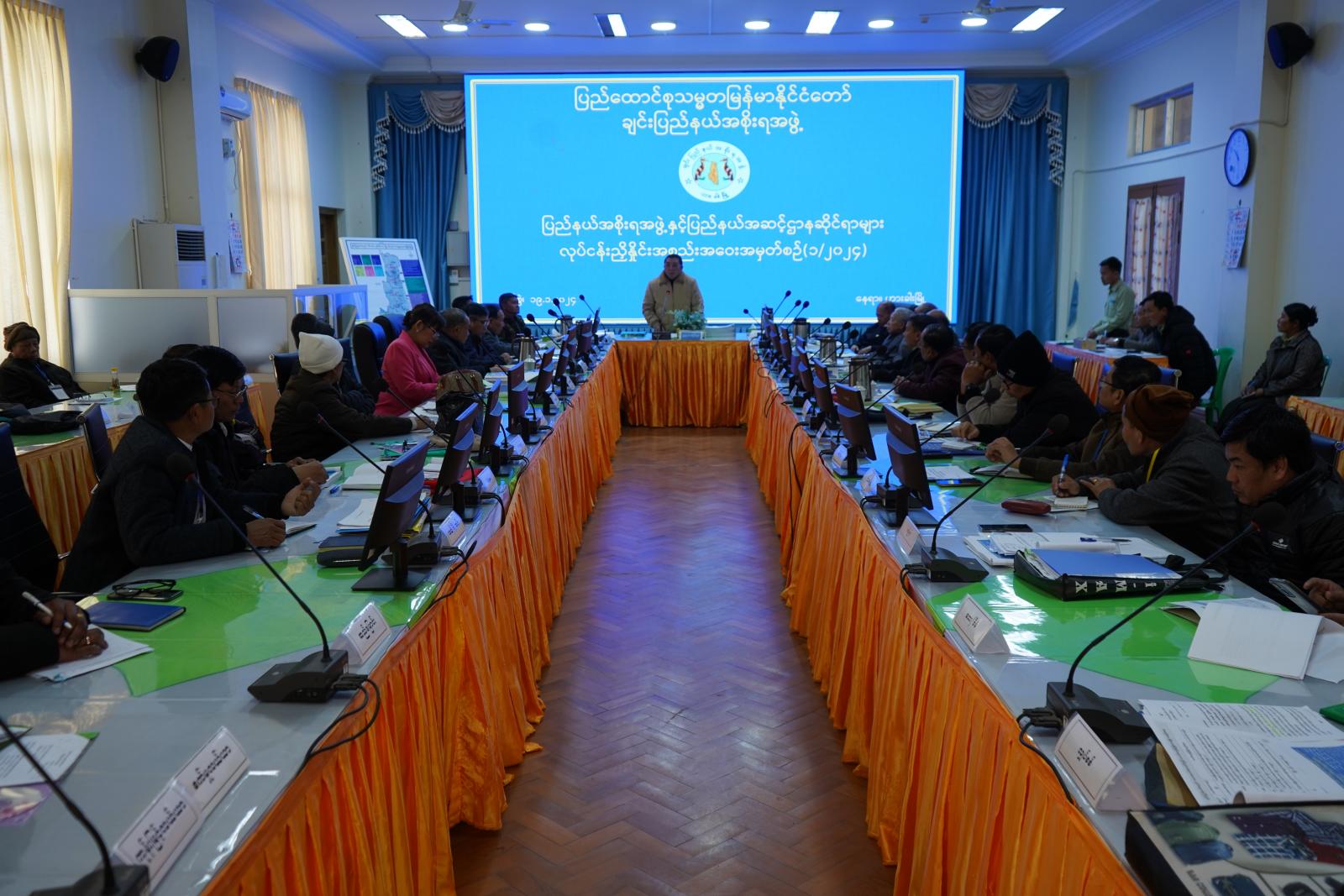 ချင်းပြည်နယ်အစိုးရအဖွဲ့နှင့် ပြည်နယ်အဆင့်ဌာနဆိုင်ရာများ လုပ်ငန်းညှိနှိုင်းအစည်းအဝေး အမှတ်စဉ်(၁/၂၀၂၄) ကို ဟားခါးမြို့၊ ချင်းပြည်နယ်အစိုးရအဖွဲ့ရုံးအစည်းအဝေးခန်းမ၌ ယမန်နေ့နံနက် ၁၀ နာရီကကျင်းပရာ ချင်းပြည်နယ်ဝန်ကြီးချုပ် ဒေါက်တာဝုန်ဆွန်းထန်၊ အနောက်မြောက်တိုင်းစစ်ဌာနချုပ်မှ ဗိုလ်မှူးချုပ်နိုင်ဝင်းအောင်၊ ပြည်နယ်တရားလွှတ်တော်တရားသူကြီးချုပ် ဦးနေစိုး၊ ပြည်နယ်ဝန်ကြီးများ၊ ပြည်နယ်ဥပဒေချုပ်၊ ပြည်နယ်အစိုးရအဖွဲ့အတွင်းရေးမှူးနှင့် ပြည်နယ်အဆင့်ဌာနဆိုင်ရာတာဝန်ရှိသူများ တက်ရောက်ကြသည်။