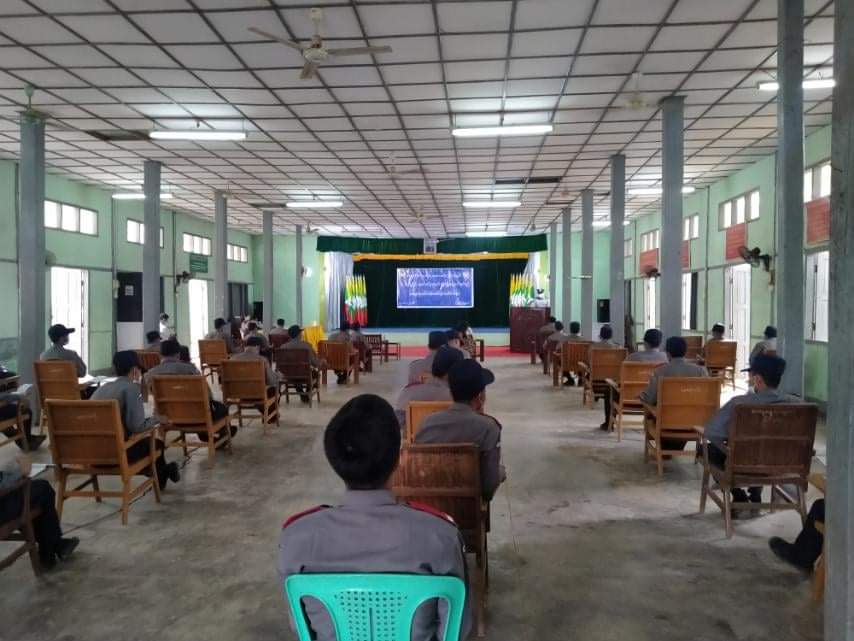 ပထမဦးစွာ မြို့နယ်အထွေထွေအုပ်ချုပ်ရေးဦးစီးဌာန မြို့နယ်အုပ်ချုပ်ရေးမှူး ဦးကျော်ကျော်လွင်က အဖွင့်အမှာ စကားပြောကြား ရာတွင် မဲရုံလုံခြုံရေး တာဝန်ထမ်ဆောင်ကျမည့် အထူးရဲများအနေဖြင့် သင်တန်းကပို့ချခဲ့သော လုပ်ထုံးလုပ်နည်းနှင့် အညီကာကွယ် မှု များ ဆောင်ရွက်ကြရန်၊ အထူးရဲများ လိုက်နာရမည့်စည်းကမ်း ကျင့်ဝတ်များ ရွေးကောက်ပွဲ ဥပဒေများကို သိရှိလိုက်နာ ဆောင်ရွက်ကြရန် ပြောကြားခဲ့ကြောင်း သိရသည်။