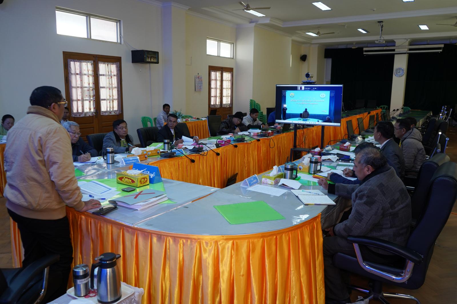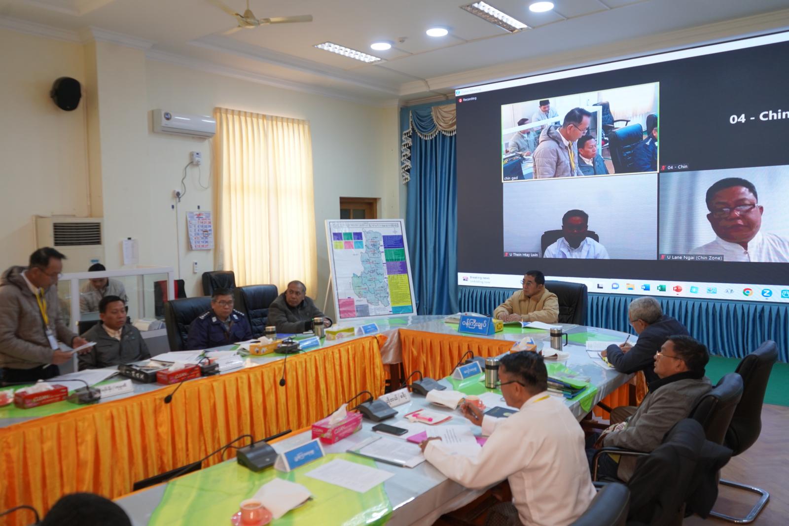 ယင်းနောက် ချင်းပြည်နယ်ဒေသဆိုင်ရာ ခရီးသွားလုပ်ငန်းကော်မတီ အတွင်းရေးမှူး၊ ဟိုတယ်နှင့်ခရီးသွားညွှန်ကြားမှုဦးစီးဌာန၊ ပြည်နယ်တာဝန်ခံ ဦးဟန် ဇော်လင်းက ချင်းပြည်နယ် ဒေသဆိုင်ရာခရီးသွားလုပ်ငန်းကော်မတီ ဆောင်ရွက်ပြီး ၊ ဆောင်ရွက်ဆဲ ၊ ဆက်လက်ဆောင်ရွက်မည့် အစီအမံများနှင့် ခရီးသွားလုပ်ငန်းကော်မတီအစည်းအဝေးဆုံးဖြတ်ချက်များပေါ် ဆောင်ရွက်ပြီးစီးမှု အခြေအနေများကို Power Point ဖြင့် ရှင်းလင်းတင်ပြပြီး Zoom Application ဖြင့် အစည်းအဝေး တက်ရောက်နေသည့်ကော်မတီဝင်များနှင့် ကျွမ်းကျင်ပညာရှင်များက အကြံပြုဆွေးနွေးတင်ပြကြ သည်။