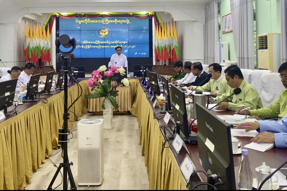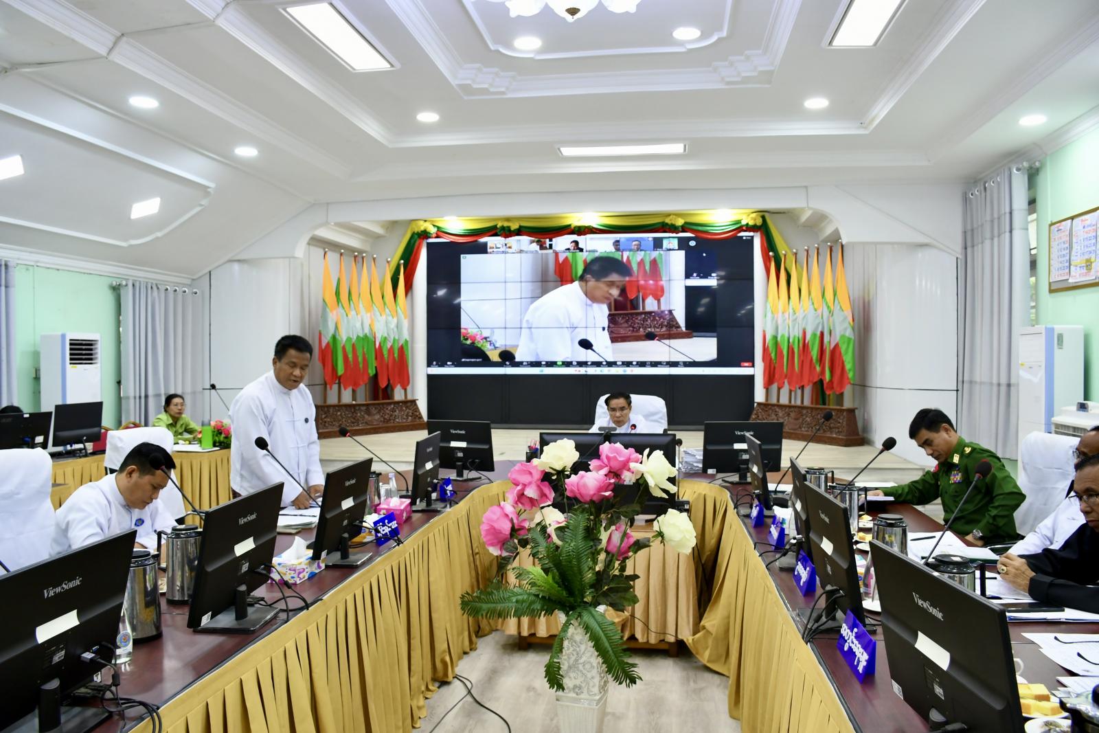ထို့နောက် တက်ရောက်လာသည့် အစိုးရအဖွဲ့ဝင် ဝန်ကြီးများက လုံခြုံရေးနှင့်တရားဥပဒေစိုးမိုးရေးဆိုင်ရာကိစ္စရပ်များ၊ ဘဏ္ဍာရေးနှစ်အလိုက် တည်ဆောက်ရေးလုပ်ငန်းများ အကောင်အထည်ဖော်ဆောင်ရွက်နိုင်မှု အခြေအနေများ၊ ရသင့်ရထိုက်သည့် အခွန်ငွေနှင့် ကြွေးကျန်ကိစ္စရပ်များအပေါ် ဖြေရှင်းဆောင်ရွက်သွားရမည့်နည်းလမ်းများအား ရှင်းလင်းတင်ပြခဲ့ကြသည်။ ၎င်းနောက် တိုင်းဒေသကြီးအစိုးရအဖွဲ့ အတွင်းရေးမှူးက နိုင်ငံတော်စီမံအုပ်ချုပ်ရေးကောင်စီရုံးနှင့် ပြည်ထောင်စုအစိုးရအဖွဲ့ရုံး၏ ညွှန်ကြားချက်များအား ဖတ်ကြားရှင်းလင်းပြောကြားခဲ့သည်။