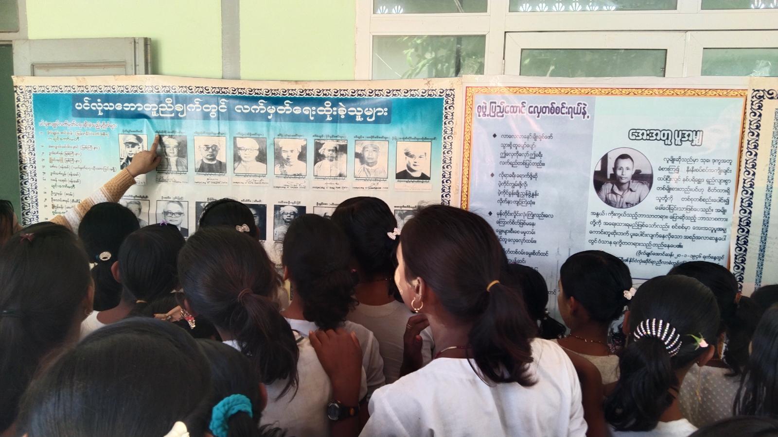 ဆက်လက်၍ ပြန်ကြားရေးနှင့်ပြည်သူ့ဆက်ဆံရေးဦးစီးဌာန ဝန်ထမ်းများက ပြည်ထောင်စုနေ့အကြောင်း သိကောင်းစရာ၊ အပြည်ပြည်ဆိုင်ရာမူးယစ်ဆေးဝါးအန္တရာယ် တားဆီးကာကွယ်ရေးအသိပညာပေး၊ လူကုန်ကူးမှုအန္တရာယ်အသိပညာပေး၊ ကလေးအလုပ်သမားဆိုင်ရာ အသိပညာပေးနံရံကပ်စာစောင်များကိုပြသရာ ကျောင်းသား၊ ကျောင်းသူများမှ စိတ်ပါဝင်စားစွာ ကြည့်ရှုလေ့လာခဲ့ကြောင်း သိရသည်။