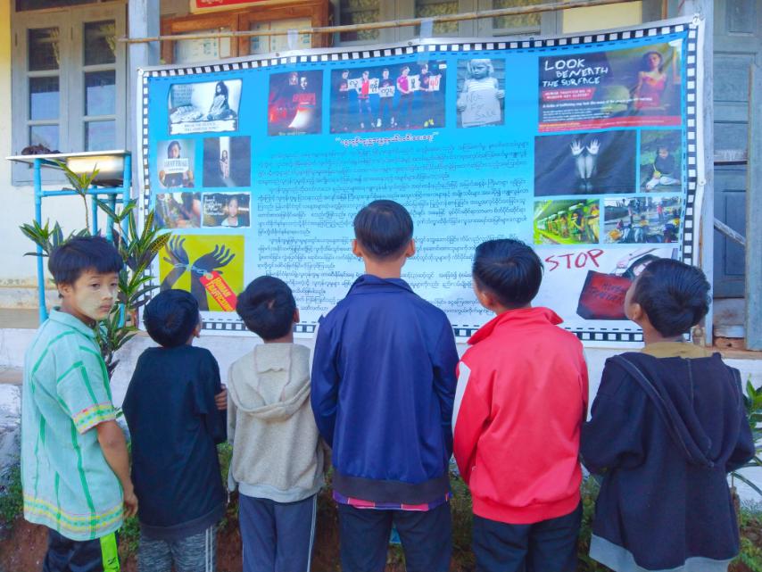 ထို့နောက် ပြန်ကြားရေးနှင့်ပြည်သူ့ဆက်ဆံရေးဦးစီးဌာနရုံးရှေ့ နံရံကပ်ပြဘုတ်တွင် လူကုန်ကူးမှုအန္တရာယ်နှင့် ပတ်သက်၍ အသိပညာပေးအကြောင်းအရာများ၊ သိမှတ်ဖွယ်ရာများ အကျယ်တဝင့်သိရှိစေရေးအတွက် ပြသဆောင်ရွက်ထားရှိမှုများကို ဒေသနေပြည်သူများနှင့် ကျောင်းသား/ကျောင်းသူလူငယ်များက ကြည့်ရှုလေ့လာမှတ်သားခဲ့ကြကြောင်း သိရသည်။