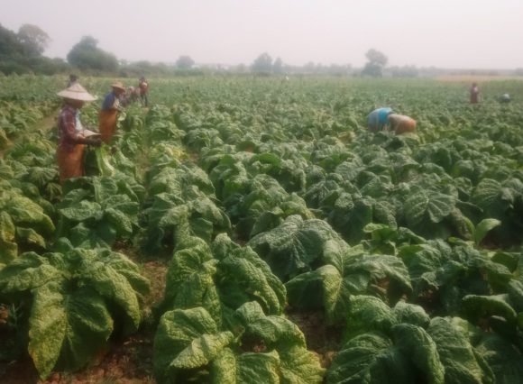 ကျွန်တော်တို့ကျေးရွာတွေက အစဉ်အဆက်စိုက်ပျိုးရေး လုပ်ငန်းလုပ်ကိုင်လာကြတာဖြစ်ပြီး တစ်မိုးကောင်း တစ်ချောင်းစီး မျှော်စရာမလိုဘဲမြေအောက်ရေကို အသုံးပြုစိုက်ပျိုးလာကြတာ ရာသီအလိုက် စိုက်ပျိုး လုပ်ကိုင်နေသော ကျေးရွာများဖြစ်သည်နှင့်အညီ ယခုအခါ မြန်မာဆေးရွက်ကြီးခေါ်ဗမာဆေးရွက်ကြီး စိုက်တောင်သူများအောင်မြင်ဖြစ်ထွန်းလျက်ဈေးကောင်းရရှိနေကြသည်။ ဗမာဆေးရွက်ကြီးများကို ဝါဆို၊ ဝါခေါင်လ များတွင်ပျိုးစတင်ထောင်ကြပြီး ပျိုးထောင်ချိန်မှ အပင်ပေါက်ချိန်ထိနှစ်လခန့်ကြာမြင့်ကြောင်း တော်သလင်းလ၊ သီတင်းကျွတ်လတွင်အပင်ခွဲစိုက်ကြပြီး ရေသွင်း၊ ပေါင်းသင်၊ မြေတောင်မြှောက်ပေးနေရကာ အပင်ကြီးထွားလာချိန် အရွက်များအသားတင်လာစေရန်အပင် အခြေအနေပေါ်မူတည်ပြီးခေါင်ညွှန့်ချိုးပေးရသည်။ အောက်ဆုံးအရွက်ရင့်မှစကာ နှစ်ရက်သို့မဟုတ်သုံးရက်ခြားကာ အရွက်များစတင်ခူးရပြီး ခူးပြီးသည့် အရွက်များ အစိုတစ်ပိဿကျပ် ၈၀၀၊ အစိုမရောင်းချင်လျှင် အခြောက်ရောင်းချကြောင်း၊ အခြောက်လှန်းရန်အတွက် ကွင်းပြင်ကျယ်လိုအပ်ကာ ကွင်းပြင်ကျယ်တွင် ဆေးရွက်ကြီးအရွက်များတရွက် ခြင်း ဖြန့်ခင်းနေလှန်း အခြောက်ခံရသည်။ ဗမာဆေးရွက်ကြီး အခြောက်တစ်ပိဿာလျှင် ၃၅၀ဝ ကျပ် ရောင်းချရကြောင်း သိရသည်။ တပေါင်း၊ တန်ခူးလတို့တွင်ဆေးရွက်ကြီးလုပ်ငန်းသိမ်းကြပြီး ဝါးပိုများ၊ ဝါးပုတ်များဖြင့် တစ်ရွက်ချင်းထပ်ပြီး ပြီးလှောင်ကြထားသည်။ ဆေးရွက်ကြီးပွဲစားများဆင်းဝယ်ချိန်ဈေးနှုန်းရရှိကာ လုံးကြီးခဲကြီးငွေရရှိသောကြောင့် ဆေးရွက်ကြီးစိုက်တောင်သူများ အဆင်ပြေနေကြကြောင်း ဒေသခံဆေးရွက်ကြီး စိုက် တောင်သူများကပြောပြသည်။