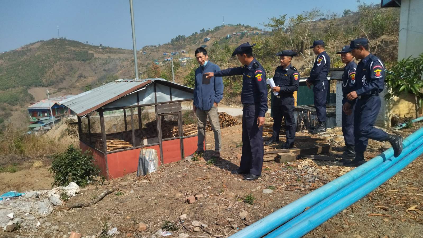 ချင်းပြည်နယ် တွန်းဇံမြို့တွင် မီးဘေးလုံခြုံမှုရှိစေရေး မြို့နယ်မီးသတ်ဦးစီးဌာနမှ ဦးစီးအရာရှိ ဦးအောင်ဆောက်နှင့် တပ်ဖွဲ့ဝင်များက မီးဘေးကြိုတင်ကာကွယ်ရေး လုပ်ငန်းများ ဆောင်ရွက် မှုနှင့် မီးသတ်ဆေးဗူး အသုံးပြုပုံကို ရုံးဌာနများသို့ ယမန်နေ့က ကွင်းဆင်း စစ်ဆေးခဲ့သည်။