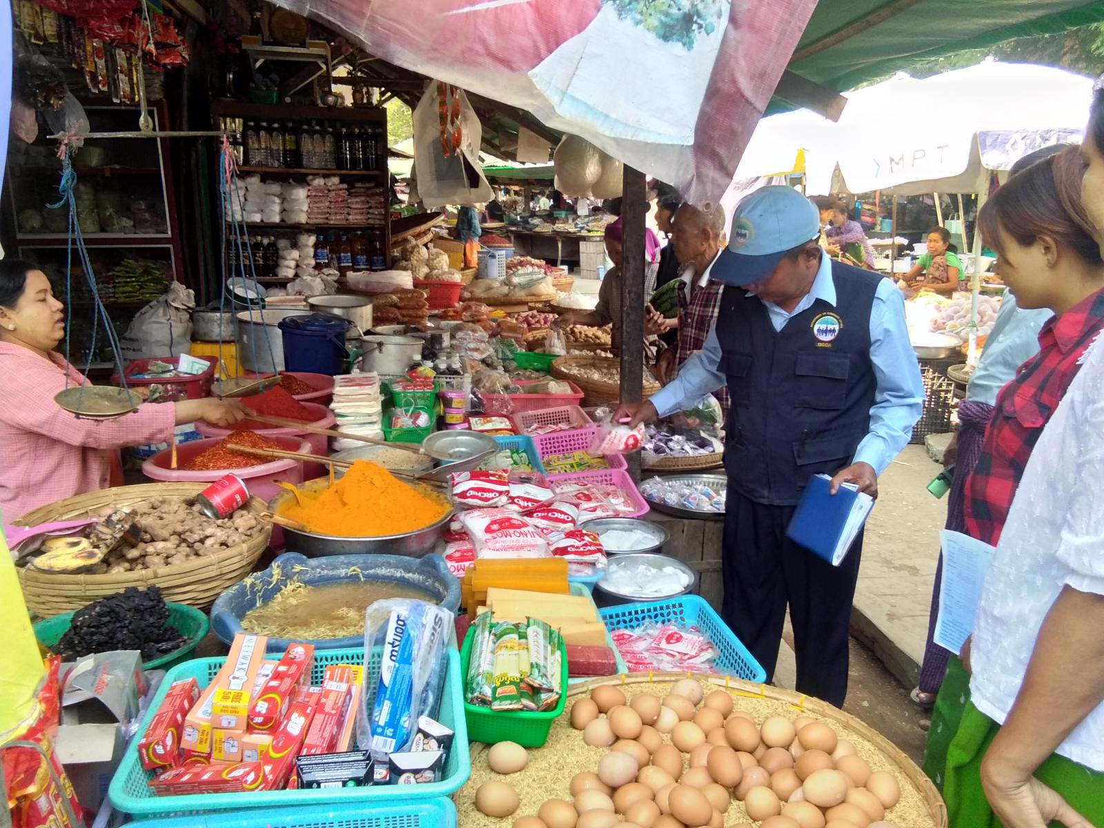 ထို့သို့ ဆောင်ရွက်ရာတွင် မြို့နယ်စားသုံးသူဦးစီးဌာန၊ တိုင်းရင်းဆေးကုဌာန၊ စည်ပင်သာယာရေး အဖွဲ့နှင့် ပြန်/ဆက် ဦးစီးဌာနတို့ ပူးပေါင်းဆောင်ရွက်ခြင်းဖြစ်ပြီး စားသုံးသူရေးရာဦးစီးဌာန တာဝန်ခံ ဦးနိုင်ဦးက တိုင်းရုံး ညွှန်ကြားချက်အရ စျေးကွက်အတွင်းရှိ ဟင်းခတ်အချိုမှုန့် ဖော်ပြအလေးချိန် ပြည့်မပြည့်နှင့် ဖော်ပြပါရှိရန် သတ်မှတ်ထားသော အချက်များ ပါဝင်မှုရှိမရှိအား စစ်ဆေးခဲ့ပြီး တိုင်းရင်းဆေးကုဌာန မြို့နယ် ဦးစီးမှူး ဦးငြိမ်းချမ်းစိုးက အများပြည်သူ သုံးစွဲရန်မသင့်သော တိုင်းရင်းဆေးဝါးများ ၊ မှတ်ပုံတင်ထားခြင်းမရှိသော တိုင်းရင်းဆေးဝါးများ ၊ သက်တမ်းလွန်ဆေးဝါးများ ရောင်းချခြင်း ရှိ / မရှိ ကွင်းဆင်းစစ်ဆေးခဲ့ကြောင်း သိရသည်။