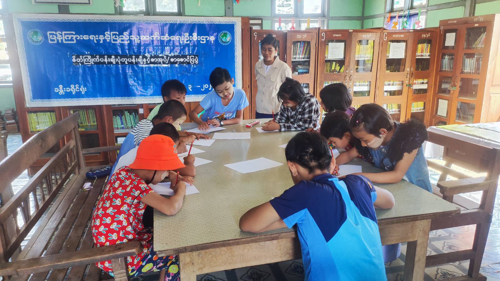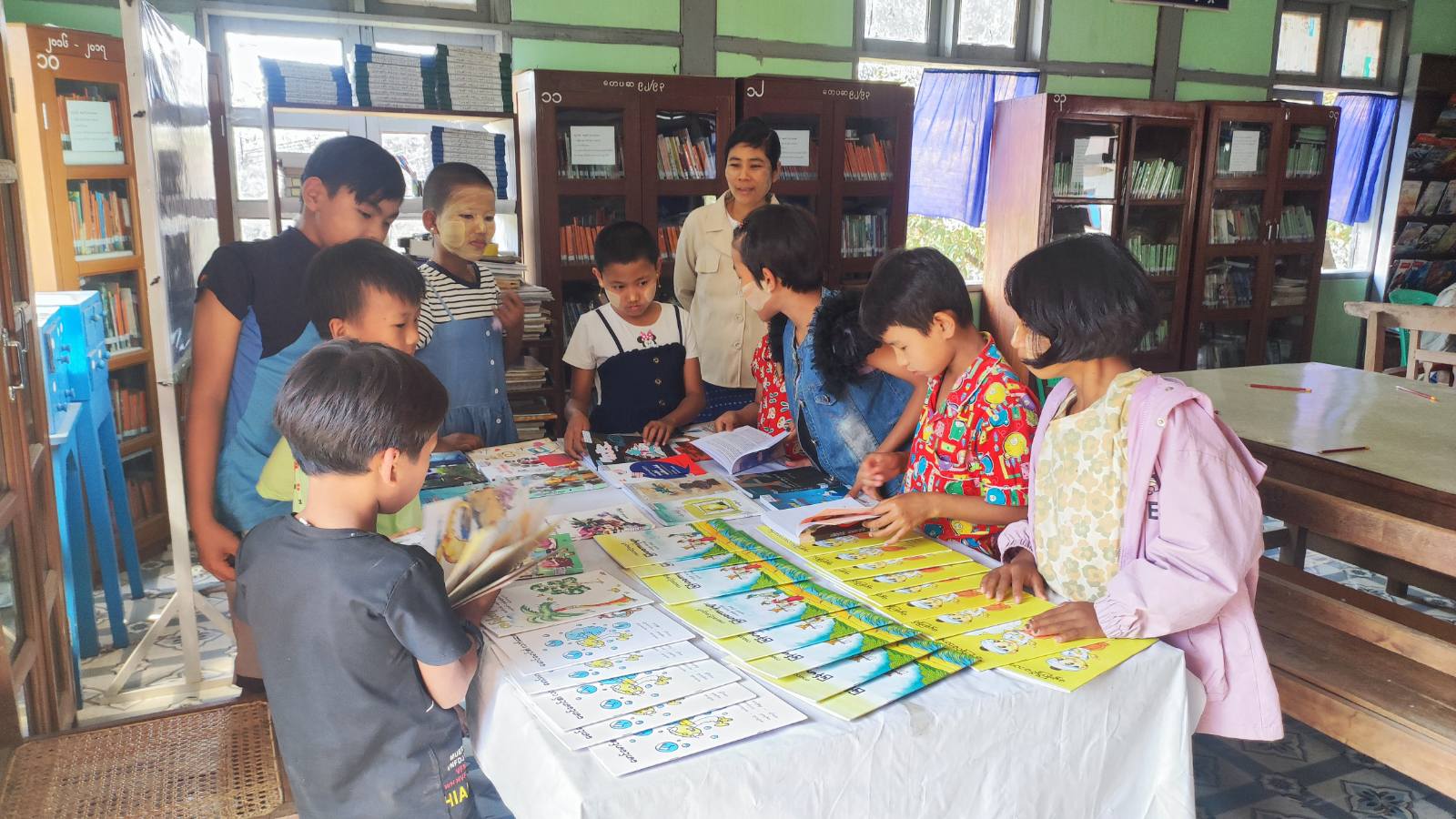 ထို့နောက် ခင်းကျင်းပြသထားသည့် သုတ/ရသ စာအုပ်များအား ကလေးငယ်လေးများက စိတ်ဝင်တစား လေ့လာဖတ်ရှုခဲ့ကြကြောင်း သိရသည်။