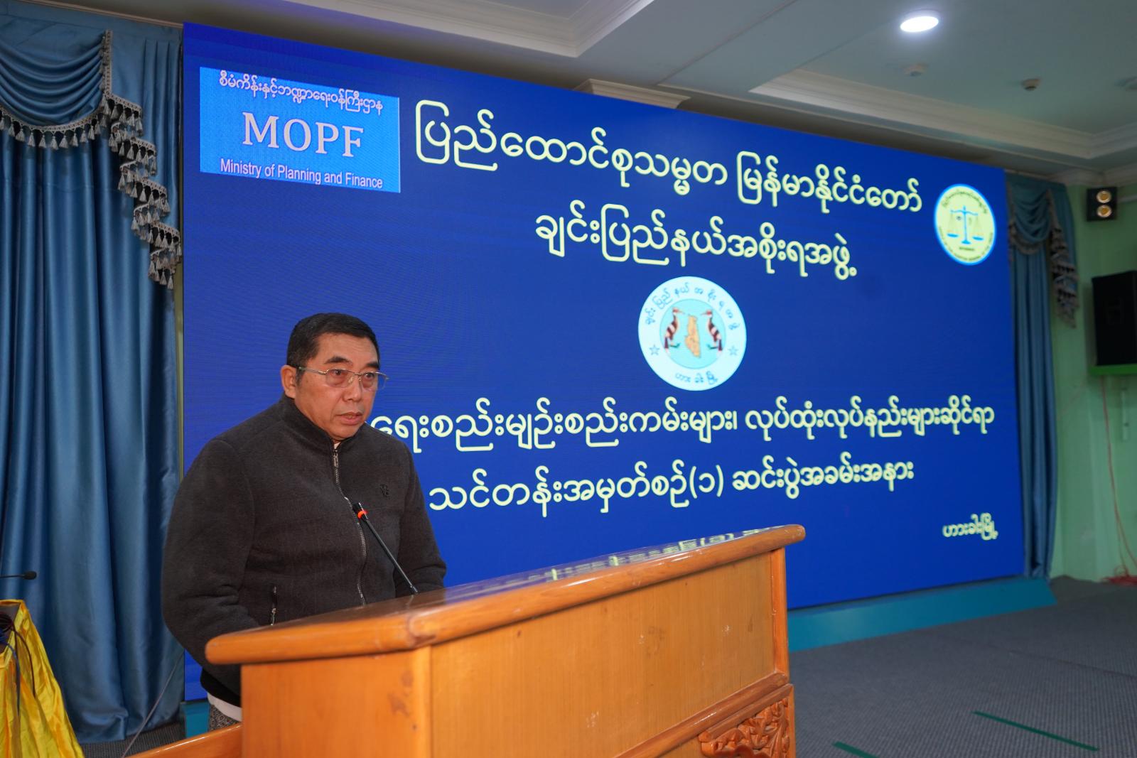ချင်းပြည်နယ်အစိုးရအဖွဲ့၏ဦးဆောင်မှုဖြင့် ဖွင့်လှစ်သည့် ဘဏ္ဍာရေးစည်းမျဉ်းစည်းကမ်း၊ လုပ်ထုံးလုပ်နည်းများဆိုင်ရာ သင်တန်းအမှတ်စဉ်(၁/၂၀၂၄)ဆင်းပွဲအခမ်းအနားကို ယမန်နေ့ နံနက် ၁၁ နာရီက ဟားခါးမြို့၊ ချင်းပြည်နယ်အစိုးရအဖွဲ့ရုံး ချင်းပြည်နယ်အထွေထွေအုပ်ချုပ်ရေးဦးစီးဌာန၊ အစည်းအဝေးခန်းမ၌ကျင်းပရာ ပြည်နယ်ဝန်ကြီးချုပ် ဒေါက်တာဝုန်ဆွန်းထန် တက်ရောက်အမှာစကားပြောကြားသည်။