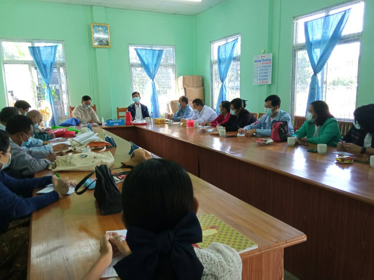 ဆက်လက်၍မြို့နယ်ရွေးကောက်ပွဲကော်မရှင်အဖွဲ့ခွဲ အတွင်းရေးမှူး ဒေါ်အိခိုင်သဇင်ထွန်းက ရွေးကောက်ပွဲဆိုင်ရာ စည်းကမ်းချက်များနှင့်အညီဆောင်ရွက်နိုင်ရေး၊ Facility Quarantine ထားရှိသူများအား ကြိုတင်ဆန္ဒမဲပေးနိုင်ရေး ဆောင်ရွက်သွားမည့်အခြေအနေများနှင့်ပတ်သက်၍ ရှင်းလင်းဆွေးနွေးခဲ့သည်။