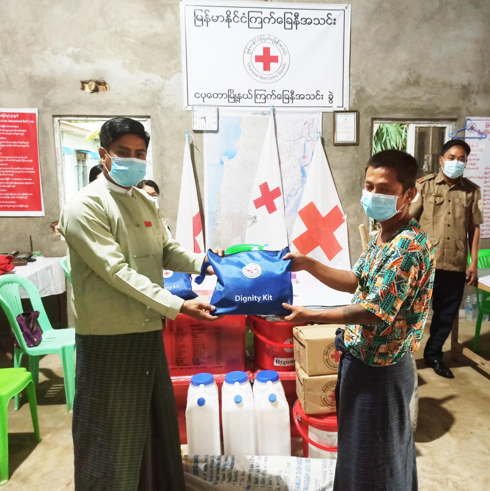 အဆိုပါ ထောက်ပံ့ပေးအပ်ပွဲတွင် မြို့နယ်အုပ်ချုပ်ရေးမှူး ဦးအောင်ချိုနှင့် မြို့နယ်ကြက်ခြေနီ အသင်းခွဲ ဥက္ကဋ္ဌ ဦးစိုးတင့်တို့ကမီး ဘေးသင့်အိမ်ထောင်စုများမှ မိသားစုဝင်များအား အားပေးစကား ပြောကြား ပြီးနောက် မီးဘေးသင့် အိမ်ထောင်စုသုံးစုအတွက် မြန်မာနိုင်ငံကြက်ခြေနီအသင်းမှ ထောက်ပံ့သည့် ပစ္စည်း ၄ မျိုးနှင့် ပျက်စီးအိမ်ထောင်စုများအတွက် ထောက်ပံ့သည့်ပစ္စည်း ၂ မျိုးတို့ကို မြို့နယ်အုပ်ချုပ် ရေးမှူး ဦးအောင်ချိုနှင့် တာဝန်ရှိသူများက မီးဘေးသင့်အိမ်ထောင်စုများမှ မိသားစုဝင်များထံ ပေးအပ်ခဲ့ကြောင်း သိရသည်။