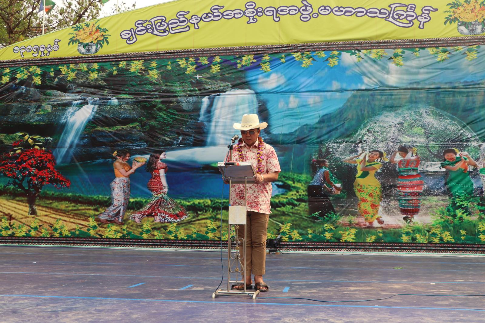 ထို့နောက် ညနေ ၃ နာရီတွင် မြန်မာ့ရိုးရာမဟာသင်္ကြန်ပွဲတော် ပိတ်ပွဲအခမ်းအနား ဆက်လက်ကျင်းပရာ ပြည်နယ်ဝန်ကြီးချုပ်က သင်္ကြန်ပွဲတော်ဟာ မြန်မာ့ (၁၂) လရာသီပွဲတော်များအနက် မြန်မာ့ယဉ်ကျေးမှုကို မဏ္ဍိုင်ပြုပြီး ပထမဦးဆုံးနှင့် ရက်ကာလအကြာမြင့်ဆုံး ကျင်းပသည့် ပွဲတော်ဖြစ်ကြောင်း၊ နှစ်ဟောင်းက အညစ်အကြေးတွေကို သင်္ကြန်ရေနှင့်ဆေးကြောသန့်စင်ပြီးဖြစ်လို့ ကမ္ဘာသူကမ္ဘာသားအပေါင်း ကိုယ်စိတ်နှလုံး ရွှင်လန်းချမ်းမြေ့ပါစေ၊ မြန်မာပြည်ကြီး အေးချမ်းပါစေကြောင်းနှင့် နှစ်သစ်မှာ လူသစ် စိတ်သစ်နှင့် ချင်းပြည်နယ်အတွင်း ဒေသဖွံ့ဖြိုးရေးလုပ်ငန်းများနှင့် ဒေသခံပြည်သူများ၏ လူမှုစီးပွားဘဝဖွံ့ဖြိုးတိုးတက်ရေးအတွက် ပြည်နယ်အစိုးရအဖွဲ့နှင့်အတူတကွ ပူးပေါင်းဆောင်ရွက်နိုင်ပါစေလို့ ဆုမွန်ကောင်းတောင်းအပ်ပါကြောင်းဖြင့် မြန်မာ့ရိုးရာနှစ်သစ်ကူးအတာသင်္ကြန်ပွဲတော် နှုတ်ခွန်းဆက်အမှာစကားပြောကြားပြီး ယိမ်းအကအဖွဲ့များက “မန်းတောင်ရိပ်ခို” သီချင်းဖြင့် စုပေါင်းသီဆိုဖျော်ဖြေ တင်ဆက်ကြကာ ၁၃၈၅ ခုနှစ် ချင်းပြည်နယ် မြန်မာ့ရိုးရာနှစ်သစ်ကူး အတာသင်္ကြန်ပွဲတော် ပိတ်ပွဲအခမ်းအနားကို အေးချမ်းပျော်ရွှင်စွာ ကျင်းပပြီးစီးခဲ့ကြောင်း သိရသည်။