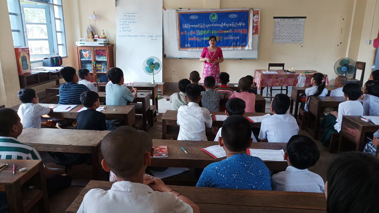 ထိုသို့ဆောင်ရွက်တွင် ပြည်ခရိုင်ပြန်ကြားရေးနှင့်ပြည်သူ့ဆက်ဆံရေးဦးစီးဌာန လက်ထောက်ညွှန်ကြားရေးမှူး ဒေါ်ခင်ရွှေဝါဖူးက "ကလေးအလုပ်သမားပပျောက်ရေး" ခေါင်းစဥ်ဖြင့် ကျောင်းသား၊ ကျောင်းသူကလေးများအားအသိပညာပေးဟောပြောဆွေးနွေးပြီး ကျောင်းသား၊ ကျောင်းသူကလေးများက သိရှိလိုသည်များကို မေးမြန်းဆွေးနွေးခဲ့သည်။