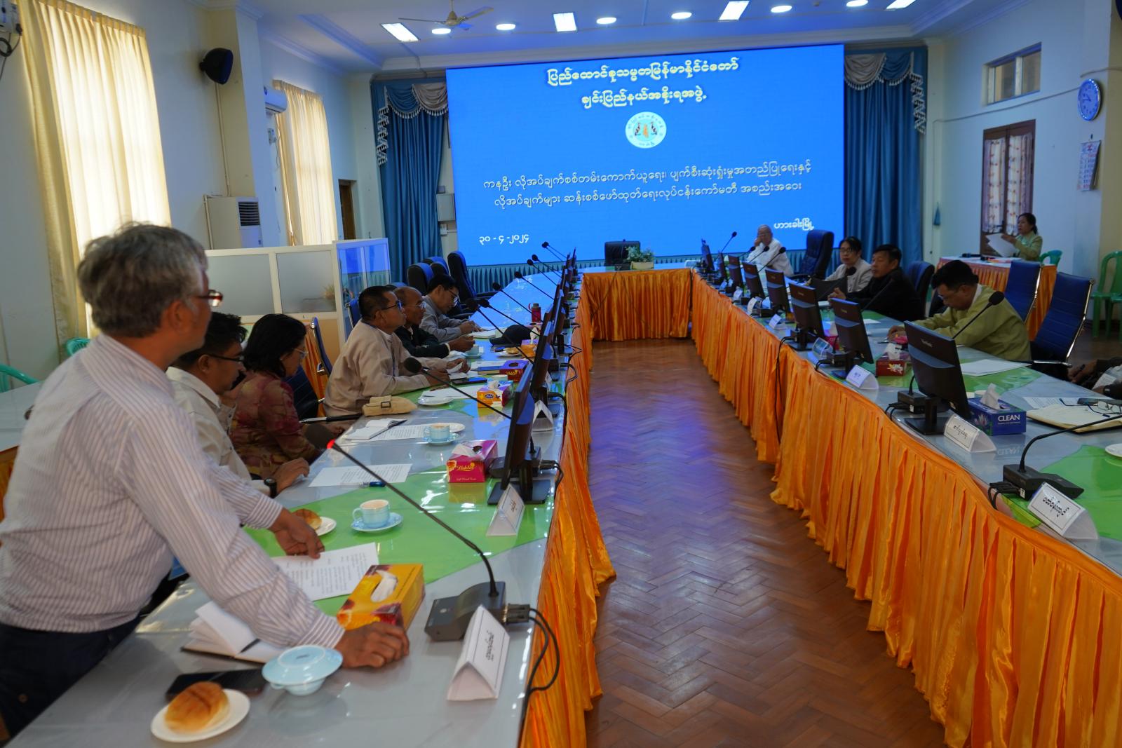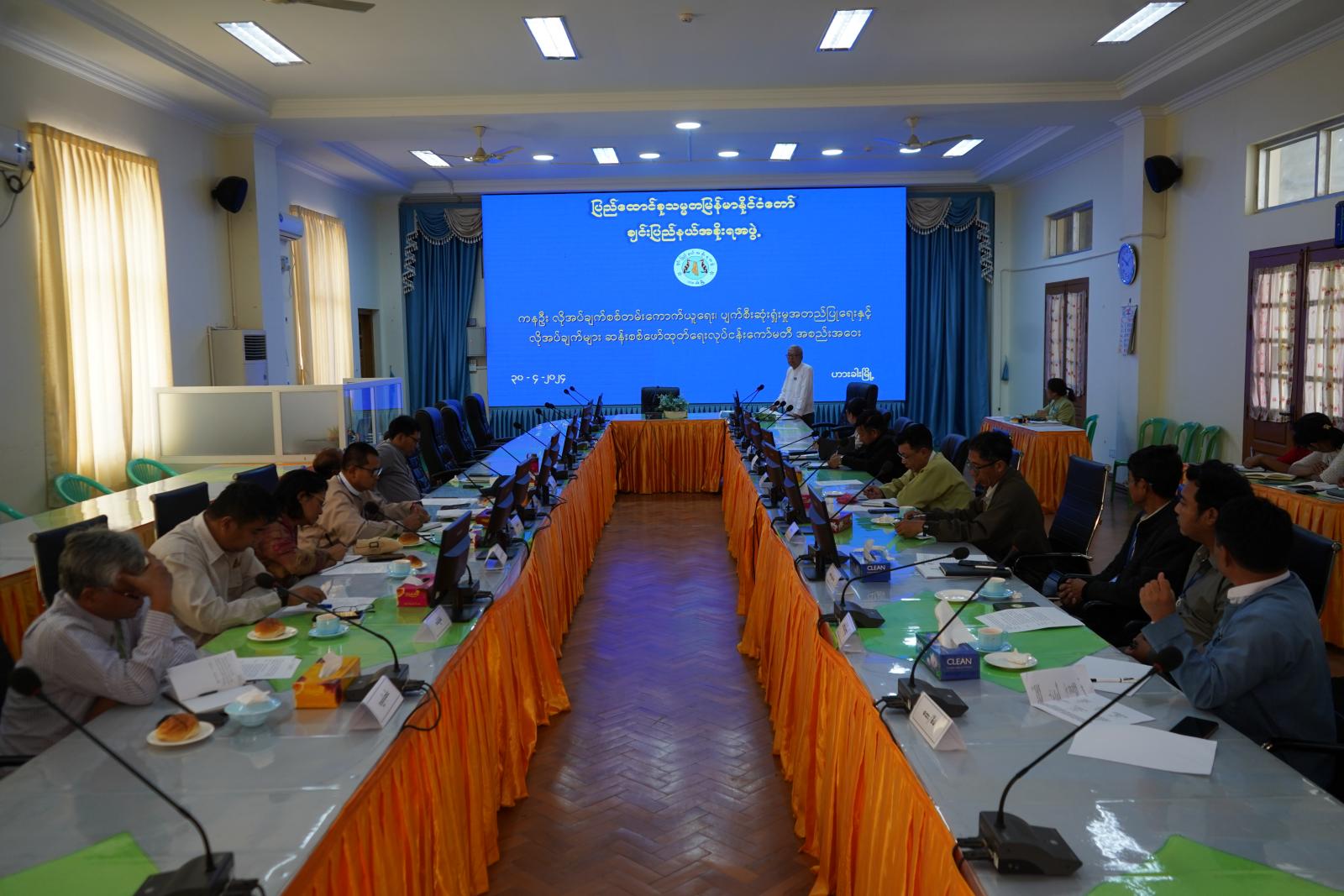 ထို့နောက် ကနဦးလိုအပ်ချက်စစ်တမ်း ကောက်ယူရေး၊ ပျက်စီးဆုံးရှုံးမှုအတည်ပြုရေးနှင့် လိုအပ်ချက်များ ဆန်းစစ်ဖော်ထုတ်ရေးလုပ်ငန်းကော်မတီ အတွင်းရေးမှူး၊ ဗဟိုစာရင်းအင်းအဖွဲ့ ပြည်နယ်တာဝန်ခံ ဒေါ်ချိုချိုဝင်းက လုပ်ငန်းဆောင်ရွက်ချက်များကို ကော်မတီဖွဲ့စည်းမှုနှင့် လုပ်ငန်းဆောင်ရွက်ချက်များကို ရှင်းလင်းတင်ပြသည်။
