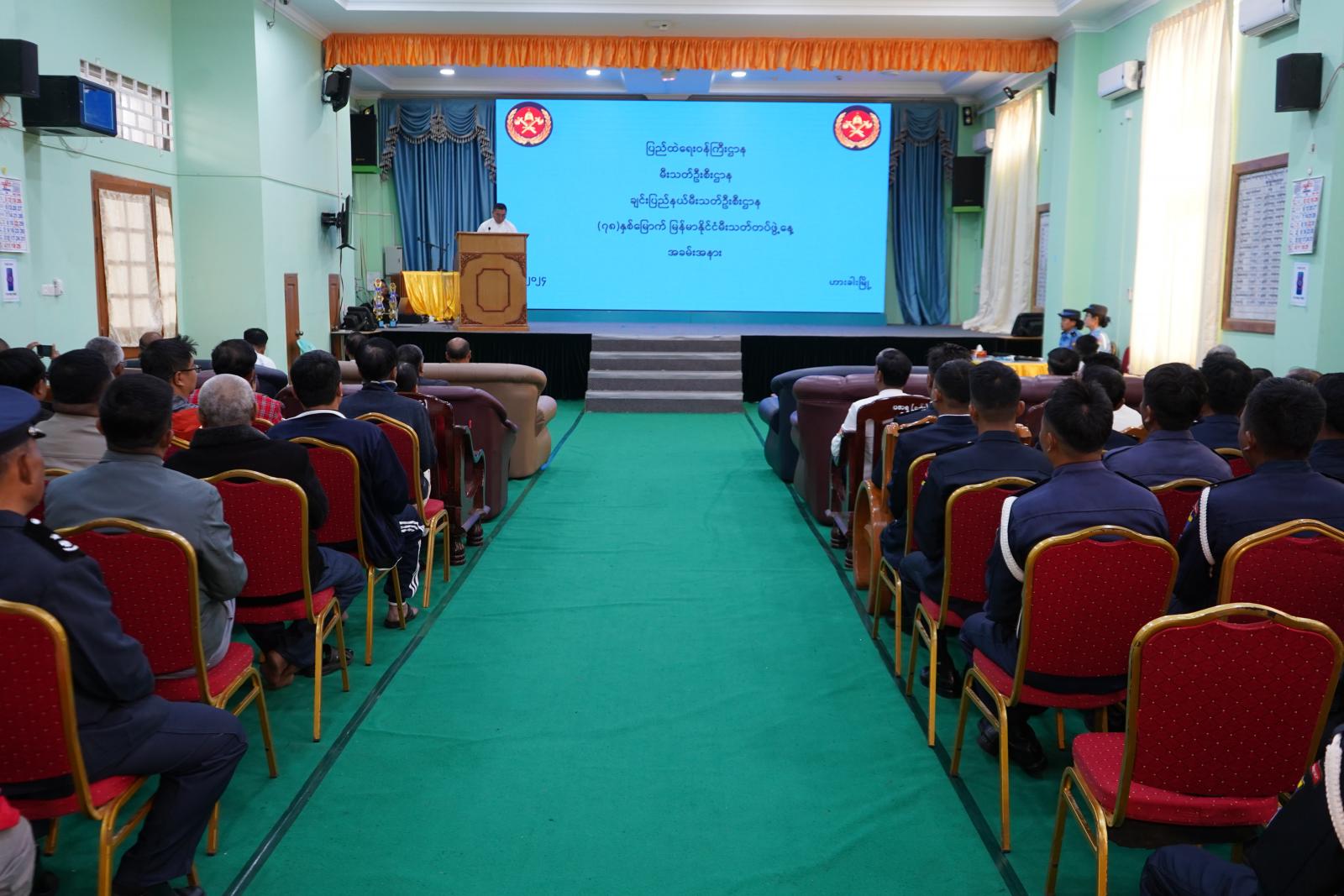 (၇၈) နှစ်မြောက် မြန်မာနိုင်ငံ မီးသတ်တပ်ဖွဲ့နေ့အခမ်းအနားကို မေလ ၅ ရက် နံနက် ၉ နာရီ က ဟားခါးမြို့၊ ချင်းပြည်နယ်အစိုးရအဖွဲ့ရုံးရှိ ပြည်နယ်အထွေထွေအုပ်ချုပ်ရေးဦးစီးဌာန၊ အစည်းအဝေးခန်းမ၌ကျင်းပရာ ချင်းပြည်နယ်ဝန်ကြီးချုပ် ဒေါက်တာဝုန်ဆွန်းထန်၊ ပြည်နယ်တရားလွှတ်တော်တရားသူကြီးချုပ်ဦးနေစိုး၊ ပြည်နယ်ဝန်ကြီးများ၊ ပြည်နယ်ဥပဒေချုပ်၊ ပြည်နယ်အစိုးရအဖွဲ့အတွင်းရေးမှူး၊ ပြည်နယ်အဆင့်ဌာနဆိုင်ရာတာဝန်ရှိသူများနှင့် ပြည်နယ်၊ ခရိုင်မီးသတ်တပ်ဖွဲ့ဝင်များ တက်ရောက်ကြသည်။