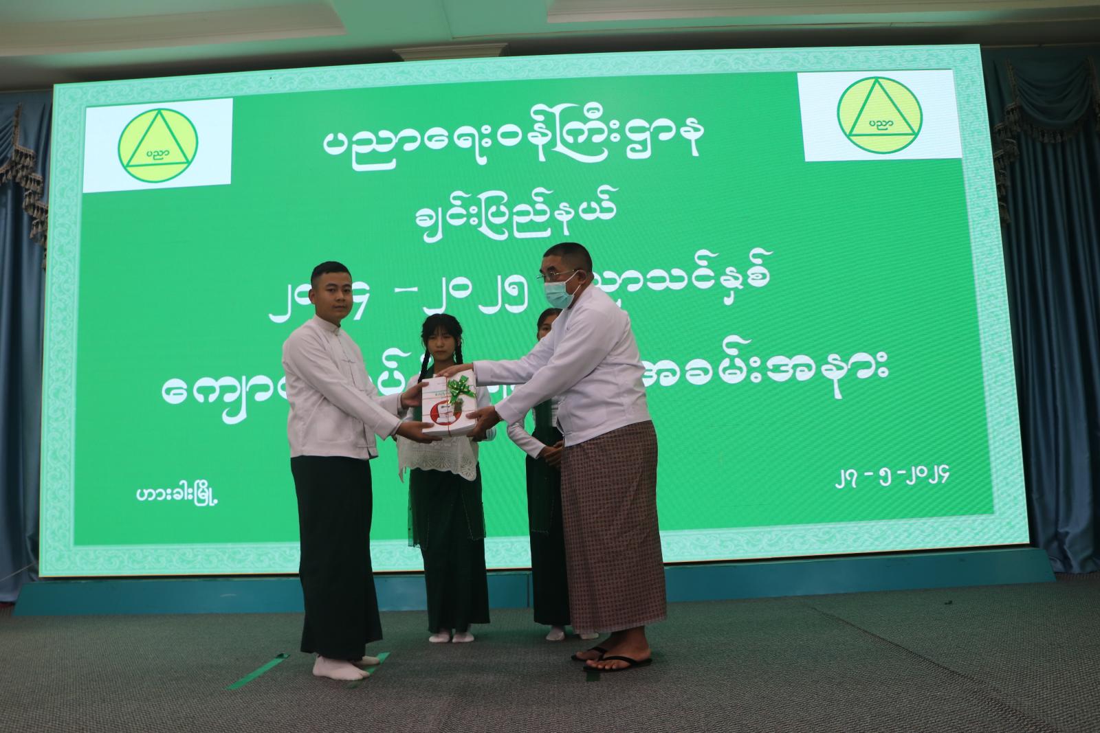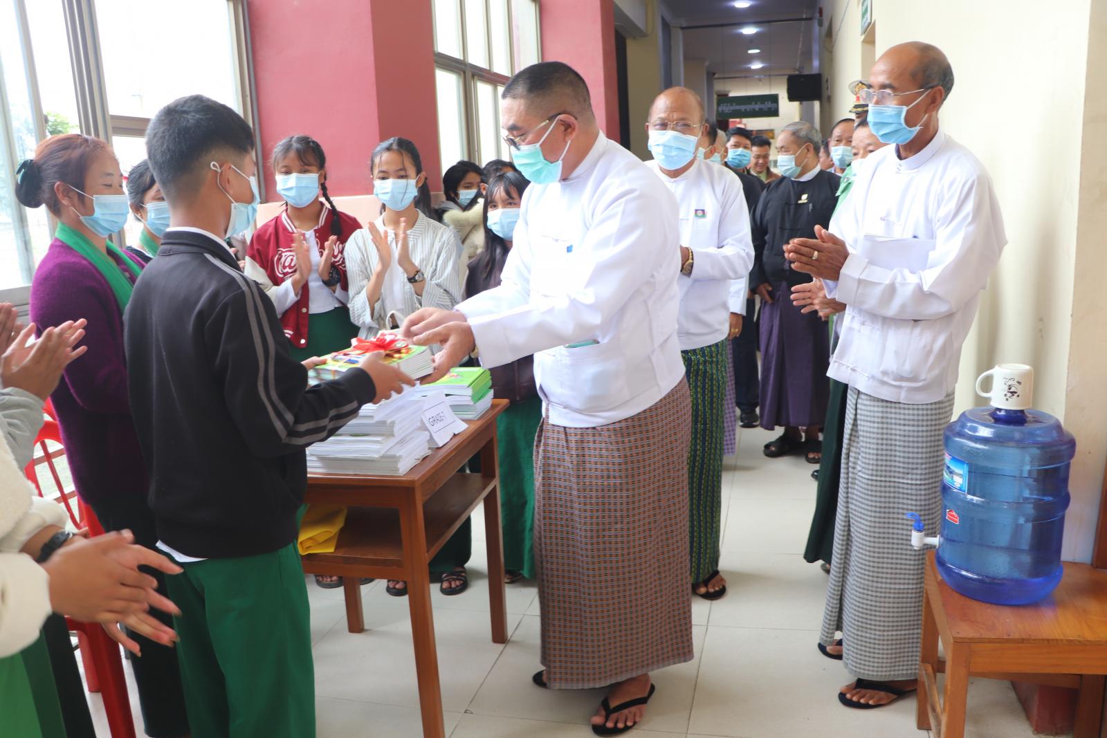 ယင်းနောက် ပြည်နယ်ဝန်ကြီးချုပ်က ဆရာ၊ ဆရာများက အတန်းအလိုက် ကျောင်းလက်ခံနေမှု အခြေအနေကို ကြည့်ရှုအားပေးပြီး ကျောင်းသား၊ ကျောင်းသူများအတွက် နိုင်ငံတော်မှ အခမဲ့ထောက်ပံ့သည့် ပုံနှိပ်စာအုပ်၊ ဗလာစာအုပ်၊ ခဲတံစသည့် ထောက်ပံ့ပစ္စည်းများကို ကျောင်းသား၊ ကျောင်းသူများအား ပေးအပ်ခဲ့ကြောင်း သိရသည်။