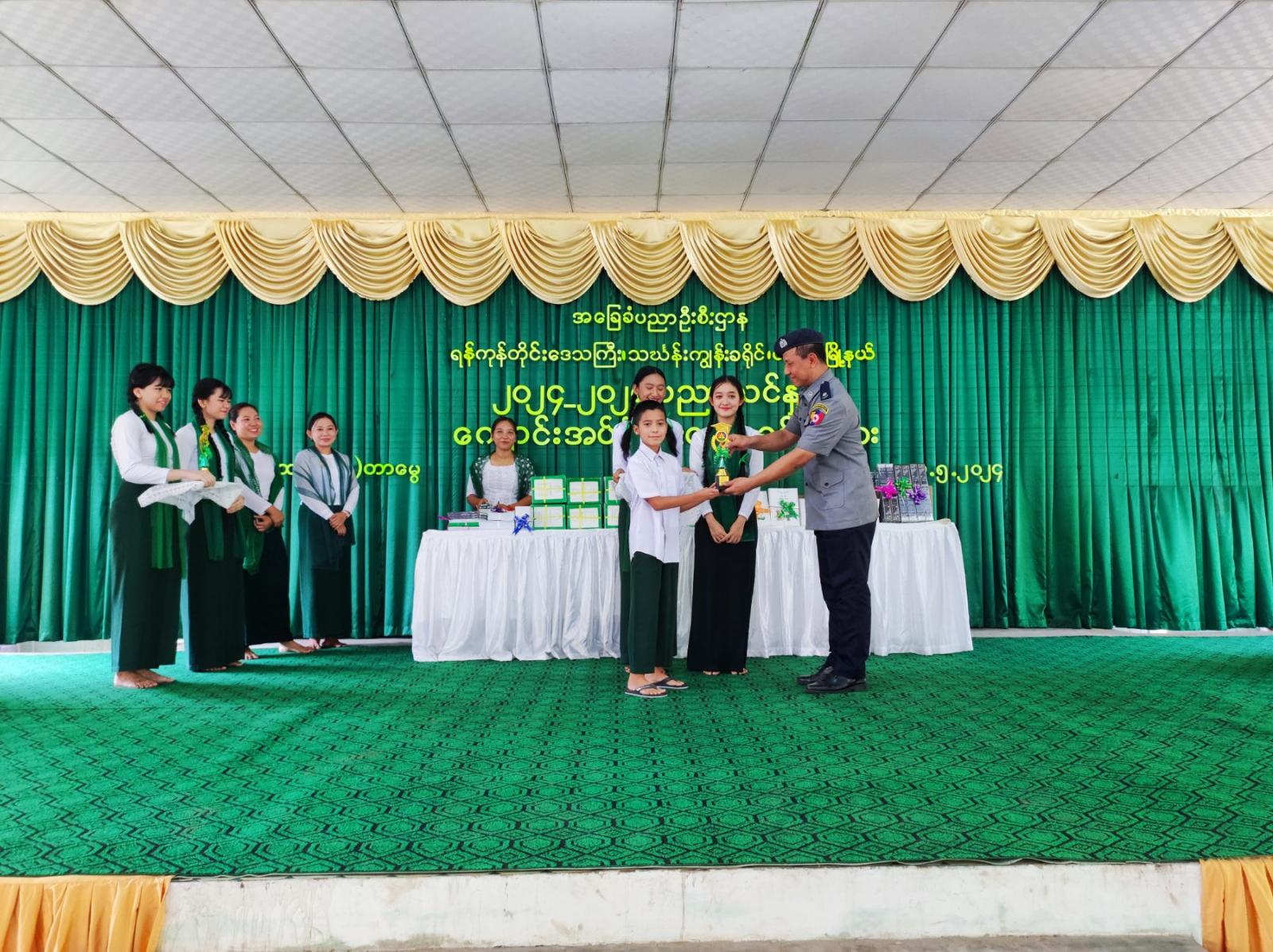 ရှေးဦးစွာ တာမွေမြို့နယ်ရှိ အမှတ်(၃)အခြေခံပညာအထက်တန်းကျောင်းမှ ကျောင်းသား/သူလေးများက “ ကျောင်းအပ်နှံရေးသီတင်းပတ် ” သီချင်းသီဆို၍ အခမ်းအနားကို စတင်ဖွင့်လှစ်ခဲ့ပြီး တာမွေမြို့နယ်စီမံအုပ်ချုပ်ရေးအဖွဲ့ အတွင်းရေးမှူး မြို့နယ်ရဲတပ်ဖွဲ့မှူး ရဲမှူးခင်မောင်ထွန်းက အဖွင့်အမှာစကားပြောကြားခဲ့သည်။ ဆက်လက်၍ “ အပြည်ပြည်ဆိုင်ရာ မူးယစ်ဆေးဝါးအလွဲသုံးမှုနှင့် တရားမဝင်ရောင်းဝယ်မှုတိုက်ဖျက်ရေးနေ့ ” အထိမ်းအမှတ် ပန်းချီပြိုင်ပွဲတွင် (မြို့နယ်အဆင့်)ထူးချွန်ဆုရရှိသူများအား ဆုများအသီးသီးပေးအပ်ချီးမြှင့်ခဲ့ကြပြီး ကျောင်းသား/သူများအား အခမဲ့ဖြန့်ဝေသော ကျောင်းသုံးပစ္စည်းများအား ပေးအပ်လှူဒါန်းရာ မြို့နယ်ပညာရေးမှူး ဒေါ်ကြူကြူခိုင်က လက်ခံရယူခဲ့သည်။ ထို့နောက် တာမွေမြို့နယ်ပညာရေးမှူး ဒေါ်ကြူကြူခိုင်က ကျေးဇူးတင်စကား ပြန်လည်ပြောကြားခဲ့ပြီး တာမွေမြို့နယ်ရှိ အမှတ်(၄)အခြေခံပညာအထက်တန်းကျောင်းမှ ကျောင်းသား/သူလေးများက “ ဇာတိမာန် ” သီချင်းသီဆို၍ အခမ်းအနားကို ရုပ်သိမ်းခဲ့သည်။