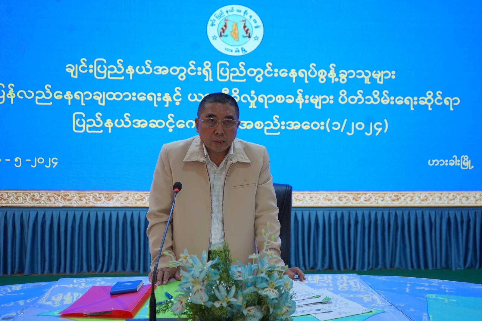ရှင်းလင်းတင်ပြချက်များအပေါ် ပြည်နယ်အဆင့်ဌာနဆိုင်ရာတာဝန်ရှိသူများနှင့် ပြည်တွင်း နေရပ်စွန့်ခွာသူများပြန်လည်နေရာချထားရေးနှင့် ယာယီခိုလှုံရာစခန်းများ ပိတ်သိမ်းရေးဆိုင်ရာ ပြည်နယ်အဆင့်ကော်မတီ ဒုတိယဥက္ကဋ္ဌ ပြည်နယ်လုံခြုံရေးနှင့်နယ်စပ်ရေးရာဝန်ကြီး ဗိုလ်မှူးကြီးသိန်းထွန်းအောင်နှင့် ပြည်နယ်အစိုးရအဖွဲ့အတွင်းရေးမှူး ဦးအောင်ချိုတို့က ဖြည့်စွက်ဆွေးနွေးတင်ပြကြပြီး ပြည်နယ်ဝန်ကြီးချုပ်က လိုအပ်ချက်များ ပေါင်းစပ်ညှိနှိုင်းပေးကာ နိဂုံးချုပ်အမှာစကား ပြောကြားသည်။