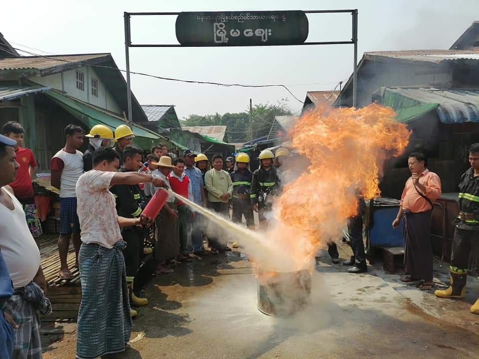 ဧရာဝတီတိုင်းဒေသကြီး မအူပင်ခရိုင် ပန်းတနော်မြို့နယ် မီးသတ်ဦးစီးမှူးရုံးမှ မြို့နယ်မီးသတ်ဦးစီးမှူး ဦးမောင်မောင်ဦးဦးဆောင်၍ မီးသတ်တပ်ဖွဲ့ဝင်များ၊ အရန်မီးသတ် တပ်ဖွဲ့ဝင်များမှ မြို့မစည်ပင်သာယာဈေးကြီးအတွင်း ဈေးမီးဘေးလုံခြုံရေးအတွက် ဈေးဆိုင်ခန်းများအား လိုက်လံစစ်ဆေးခြင်း၊ ရေရရှိရေးဆောင်ရွက်ထားရှိမှု ရှိ/မရှိ၊ မီးဘေး စိုးရိမ်ရသောပစ္စည်းများ သိုလှောင်ထားခြင်း ရှိ/မရှိ မီးငြိမ်းသတ်ရေးပစ္စည်းများ ပြည့်စုံ လုံလောက်စွာထားရှိခြင်း ရှိ/မရှိ လိုက်လံစစ်ဆေး၍ မီးသတ်ဆေးဗူးများဖြင့် ကိုယ်တိုင် ငြိမ်းသတ်၊ ယာဉ်စက်ကိရိယာများဖြင့် ဇာတ်တိုက်လေ့ကျင့်ခြင်းကို ယမန်နေ့ မွန်းလွဲ ၁၂ နာရီတွင် ဆောင်ရွက်ခဲ့သည်။