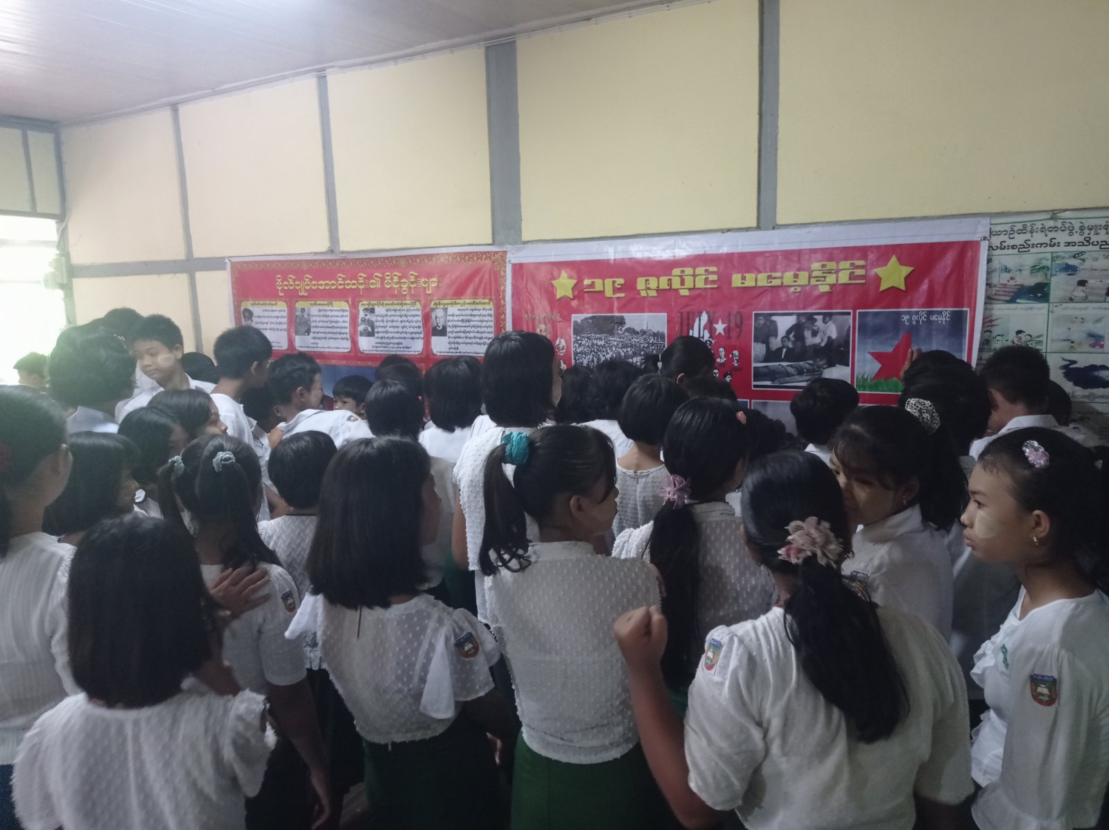 ထို့နောက် ဟောပြောပွဲတက်ရောက်လာကြသော ကျောင်းသား၊ ကျောင်းသူများက မြို့နယ်ပြန်ကြားရေးနှင့်ပြည်သူ့ဆက်ဆံရေးဦးစီးဌာနမှ ခင်းကျင်းပြသထားသော အာဇာနည်နေ့ အထိမ်းအမှတ် နံရံကပ်စာစောင်များနှင့် စာအုပ်စာစောင်များကို လေ့လာကြည့်ရှုခဲ့ကြကြောင်း သိရသည်။