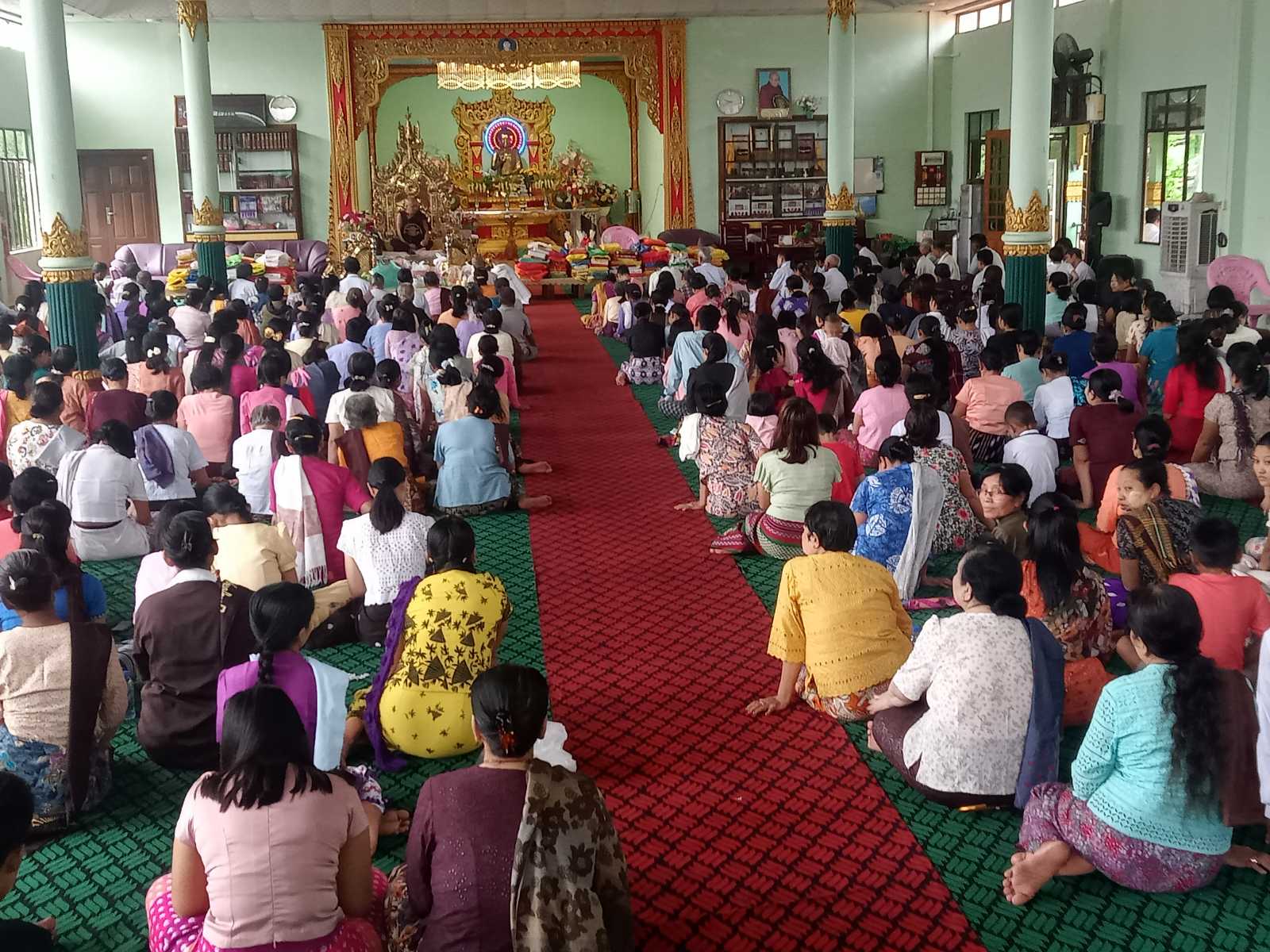 ထိုသို့ ကုသိုလ်ကောင်းမှုများ ပြုလုပ်ရာတွင် ဘီးလင်းမြို့၊ ကန်သာယာရပ်ကွက်၊ ဓမ္မဝိဟာရစာသင်တိုက် ဘုန်းတော်ကြီးကျောင်း၌ သီလခံယူဆောက်တည်သူများက နမောတဿ သုံးကြိမ်ရွတ်ဆိုကာ ဆရာတော်ထံမှ ကိုးပါးသီလ ခံယူဆောက်တည်ကြခဲ့ကြသည်။